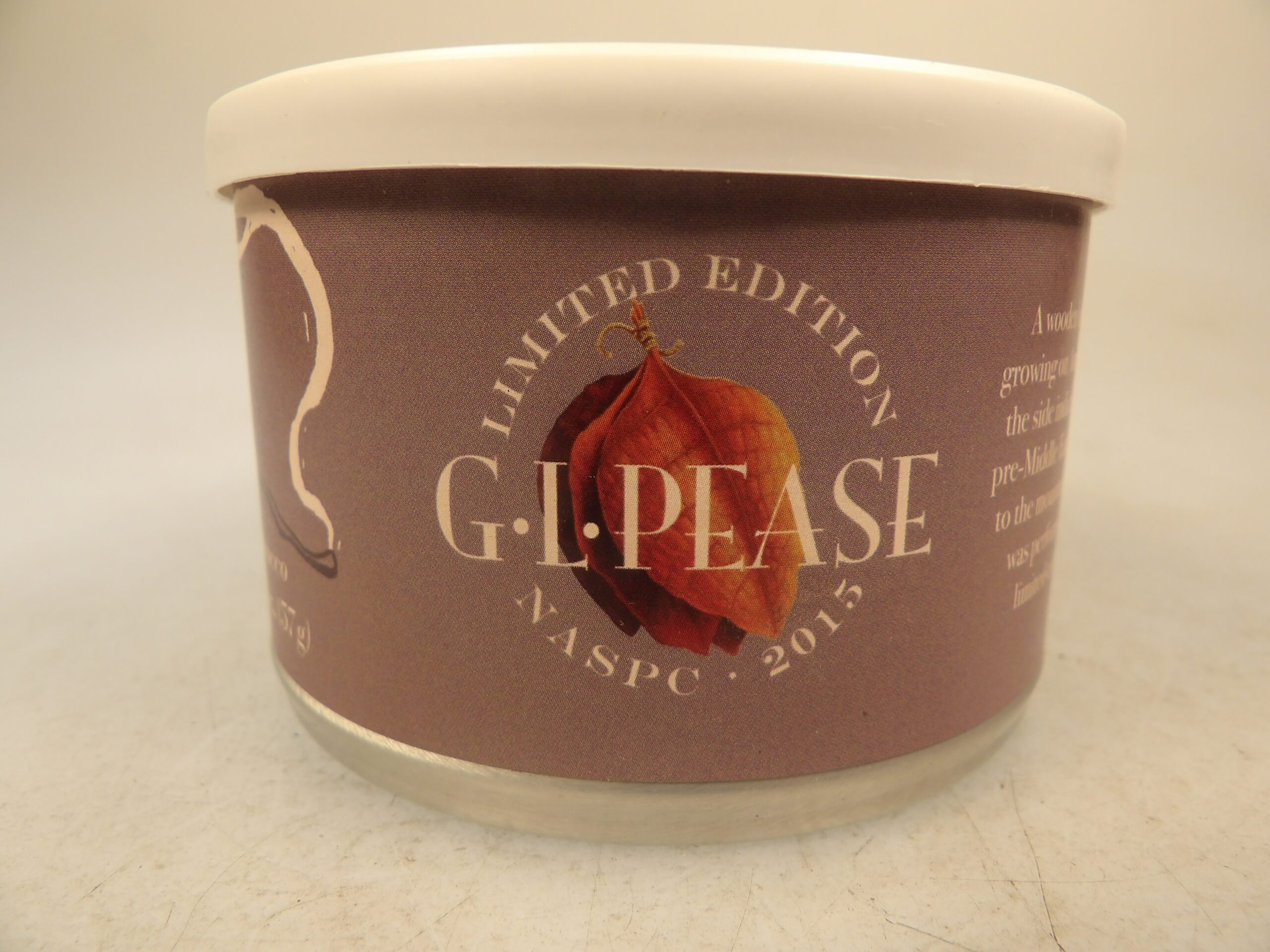 DESCRIPTION: Here is an auction for sale. It is a Vintage Collectible 10 Years Old G.L. Pease NASPC Elf Weed 2 oz’s Sealed Pipe Tobacco Tin Annual 2015 Show. This tin is sealed and has never been opened. The tin is a limited blend tin produced for this year only during the NASPC annual show. NASPC 2015 show blend: A wooden barrel was spotted inside the tall grass growing on Amelia Island, Florida. Elvish markings on the side indicated it contained a rare pipe-weed from pre-Middle Earth. The barrel was carefully transported to the mountaintop lair of G.L. Pease where wizardry was performed to transform its contents into 150 limited edition tins for the NASPC 2015 Show. Typical of Pease blends, this one will shine brightly day or night and very bite less a top shelf Virginia all the way, analysis reveals to contain rare pipe weed (Latakia, Orientals and Virginias from middle earth) in remarkable condition. Good Luck Bidding and Thanks for Stopping by.