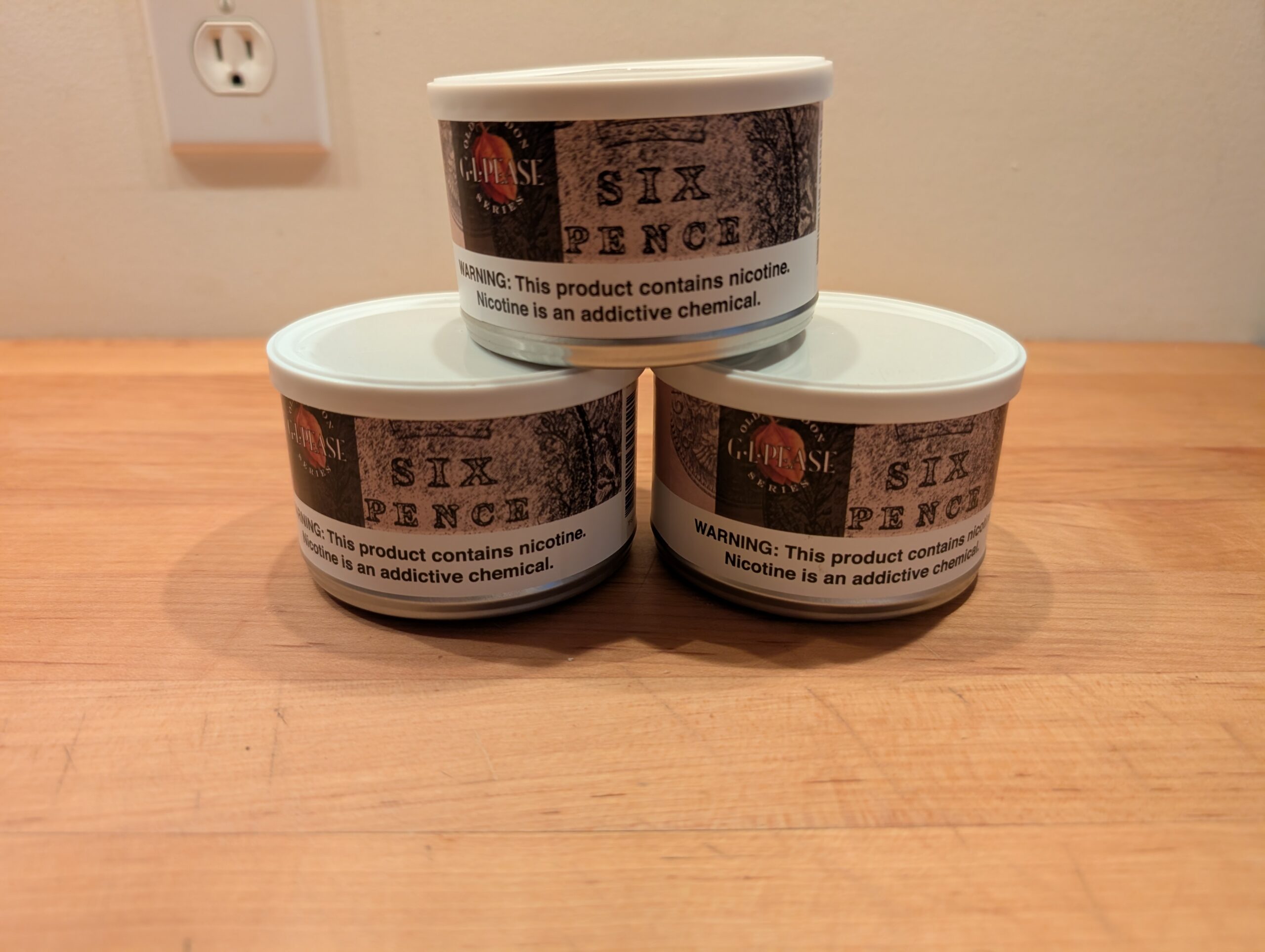 3 - 2oz tins of Six Pence purchased in 2021