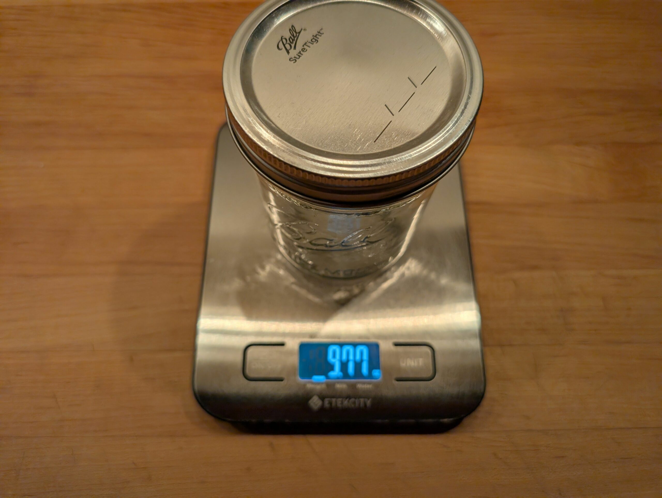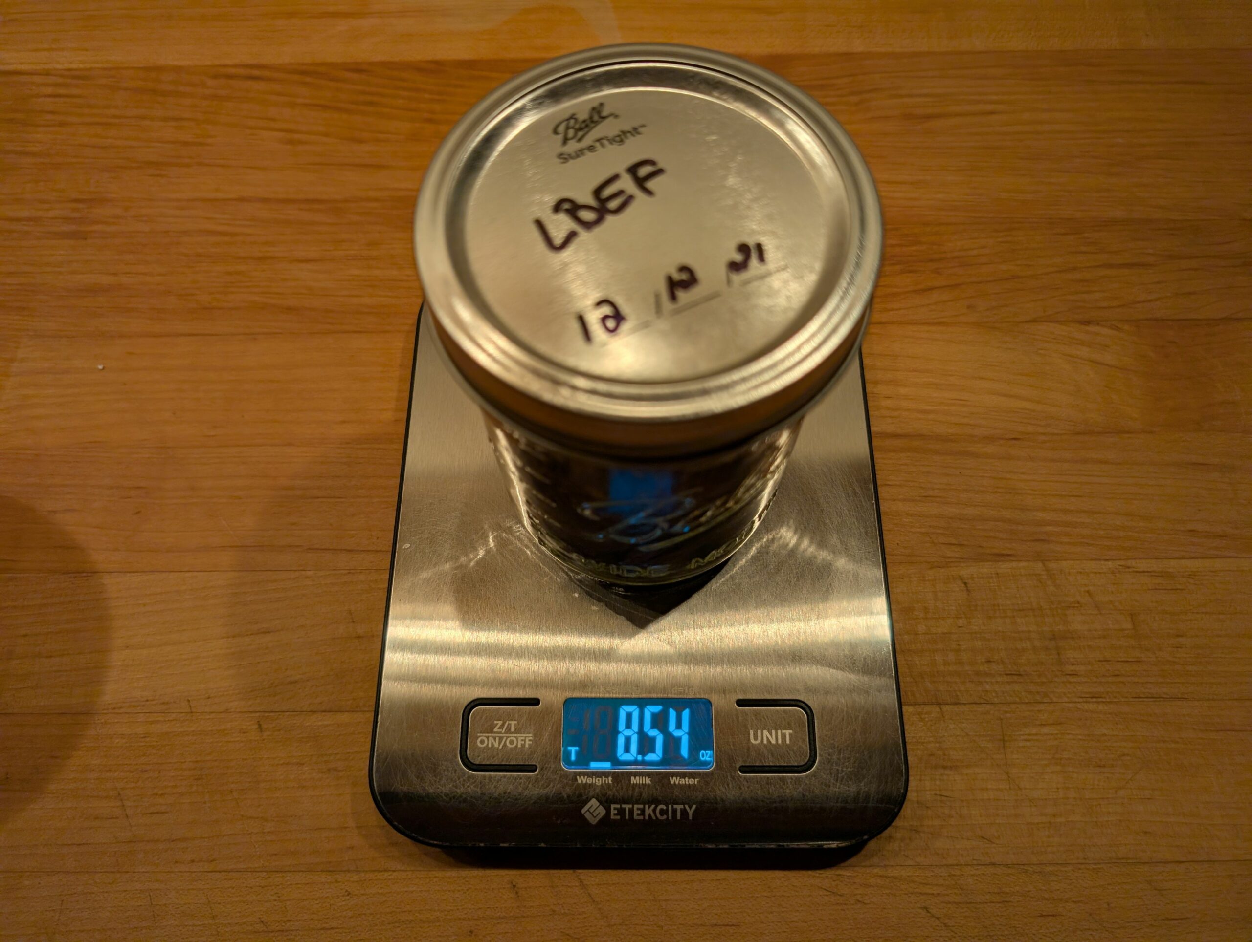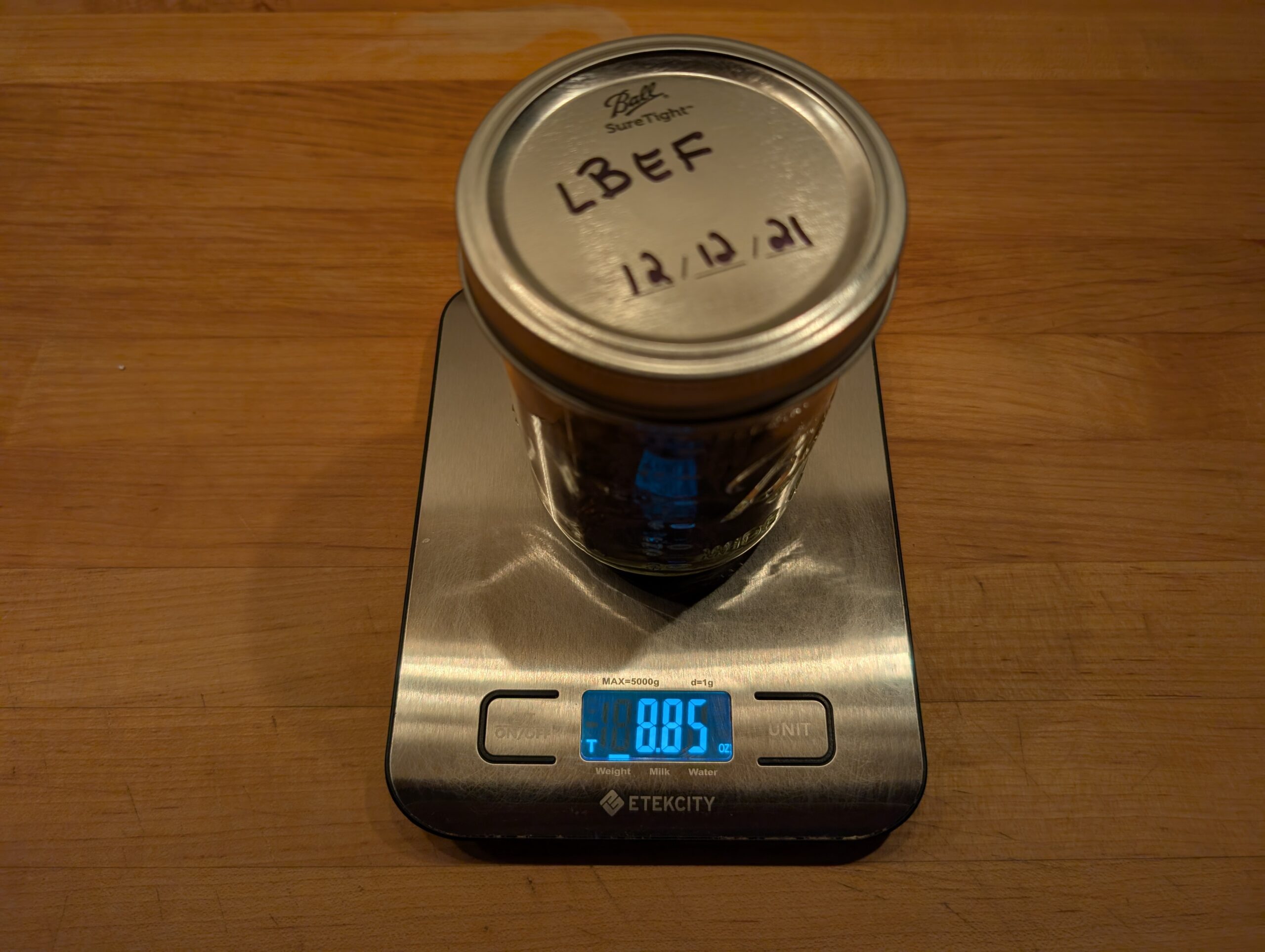 2 - Jars of Luxury Bulls Eye Flake purchased and jarred in 2022. Total weight 17 oz. Scale zero'd with empty jar.