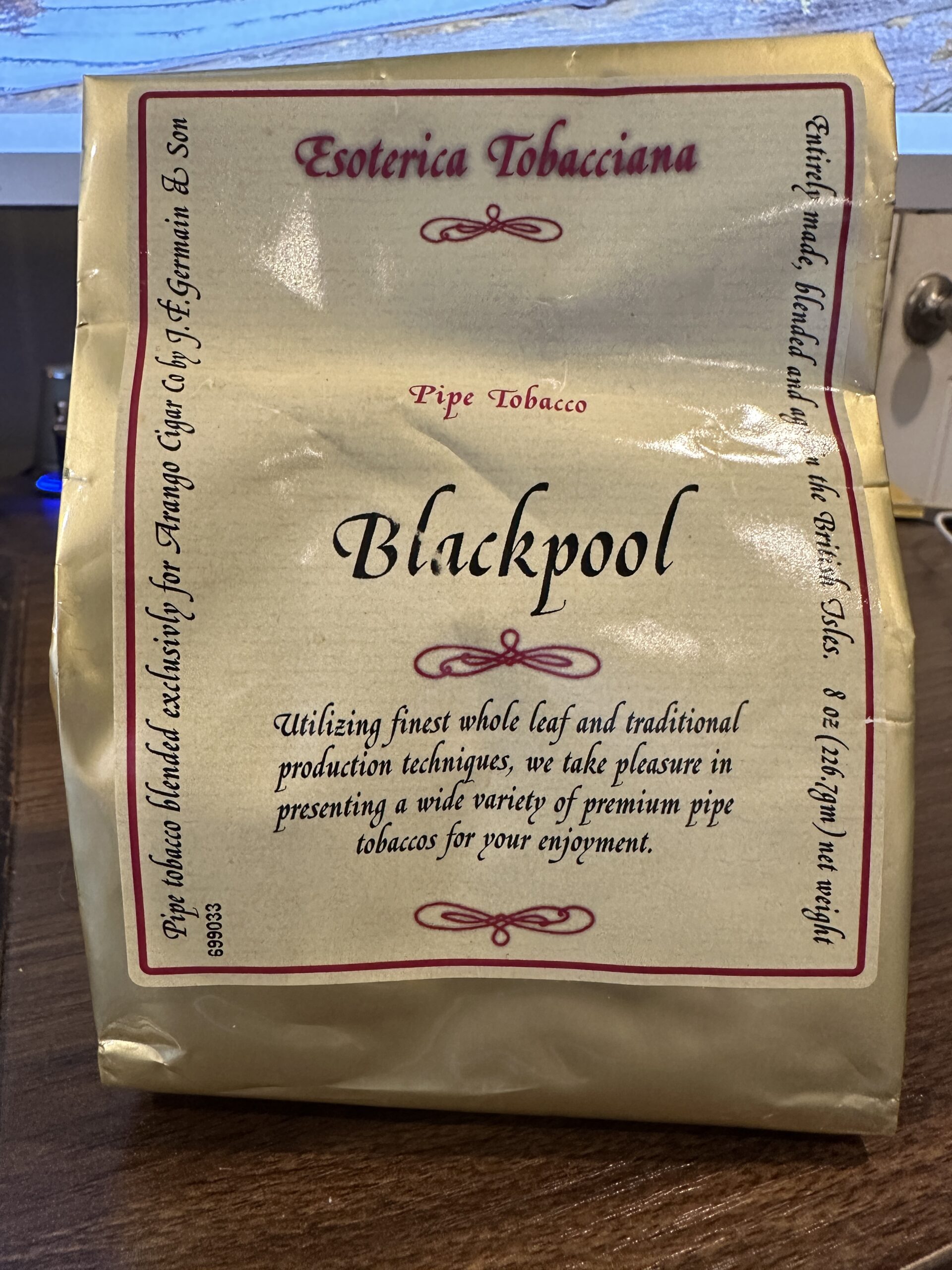 This auction is for an unopened 8-ounce bag of Esoterica’s Blackpool. I don’t know the exact age of this bag but I suspect it is 4-5 years old at a minimum.