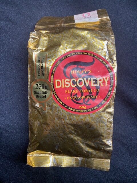 Sealed and well stored with 23 years of aging. 250g, (almost 9 ounces). The bag feels soft to the touch. Nothing but great reviews for Dan Holly's Discovery Flake on Tobaccoreviews.com.