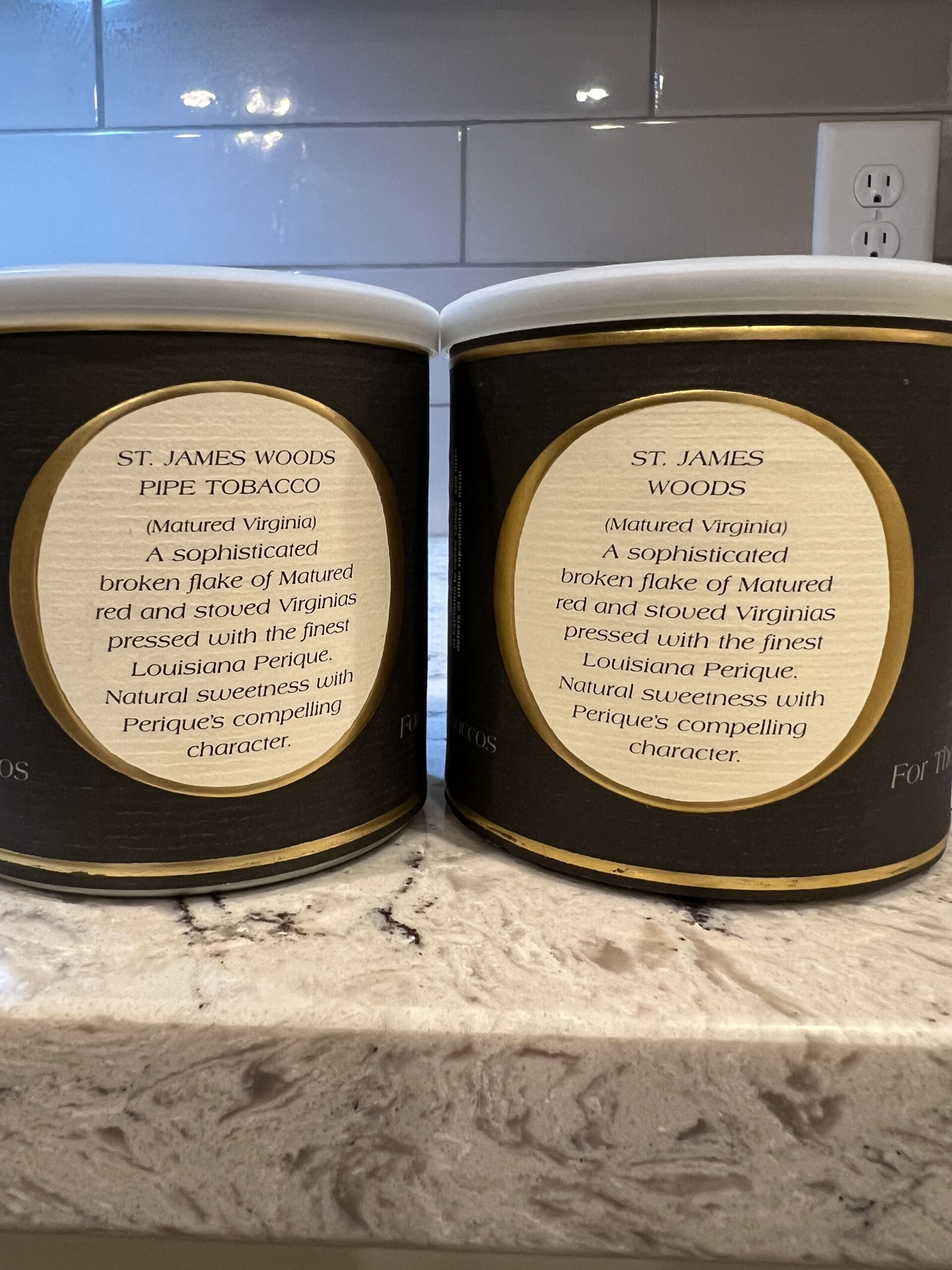 This auction is for two (2) 100g Tins of 2008 McClelland St. James Woods Virginia/Perique Flake.