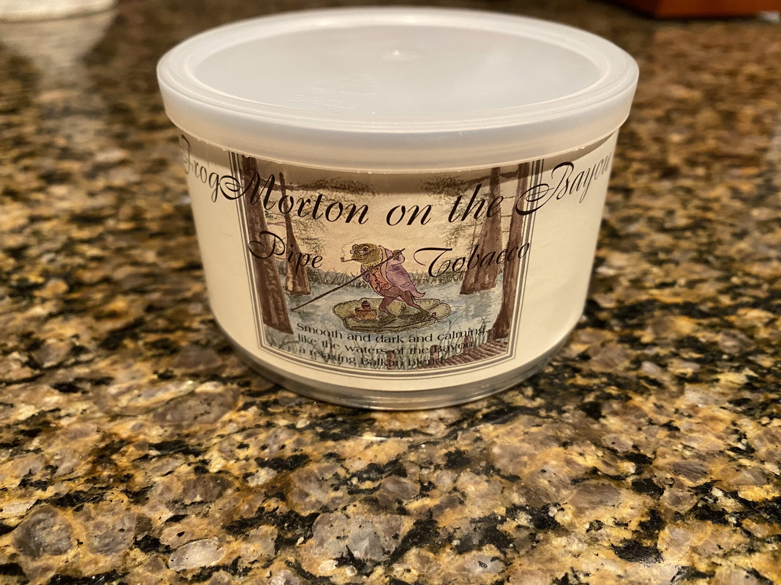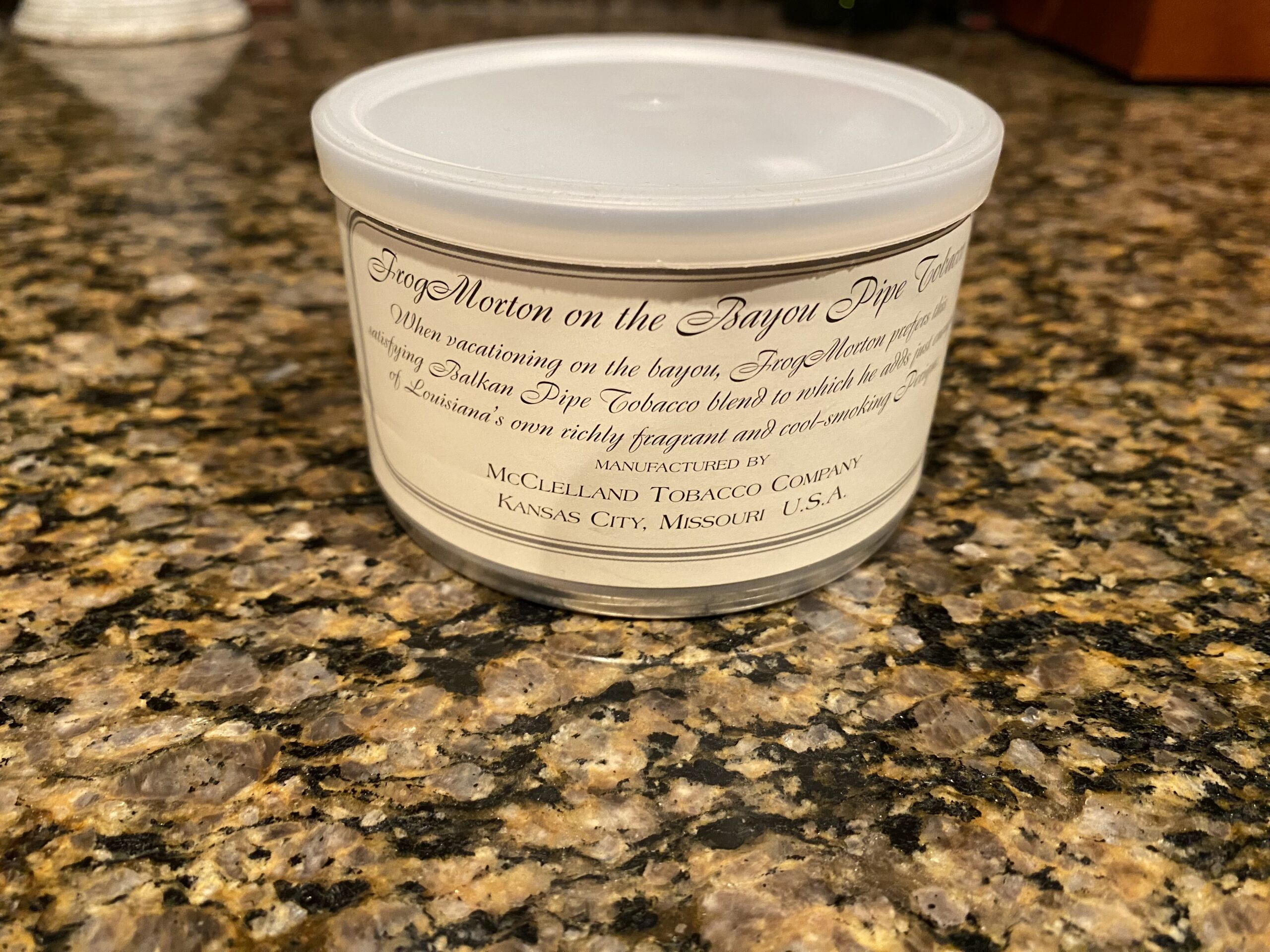 "McClelland Frog Morton on the Bayou is a rich, dark, relaxing Balkan blend pipe tobacco known for its smooth, creamy smoke with dominant notes of sweet, spicy Perique and earthy Virginia, complemented by smoky Latakia and subtle Turkish, offering a flavorful, satisfying experience with a wide margin for not biting, often described as a classic English-style blend."