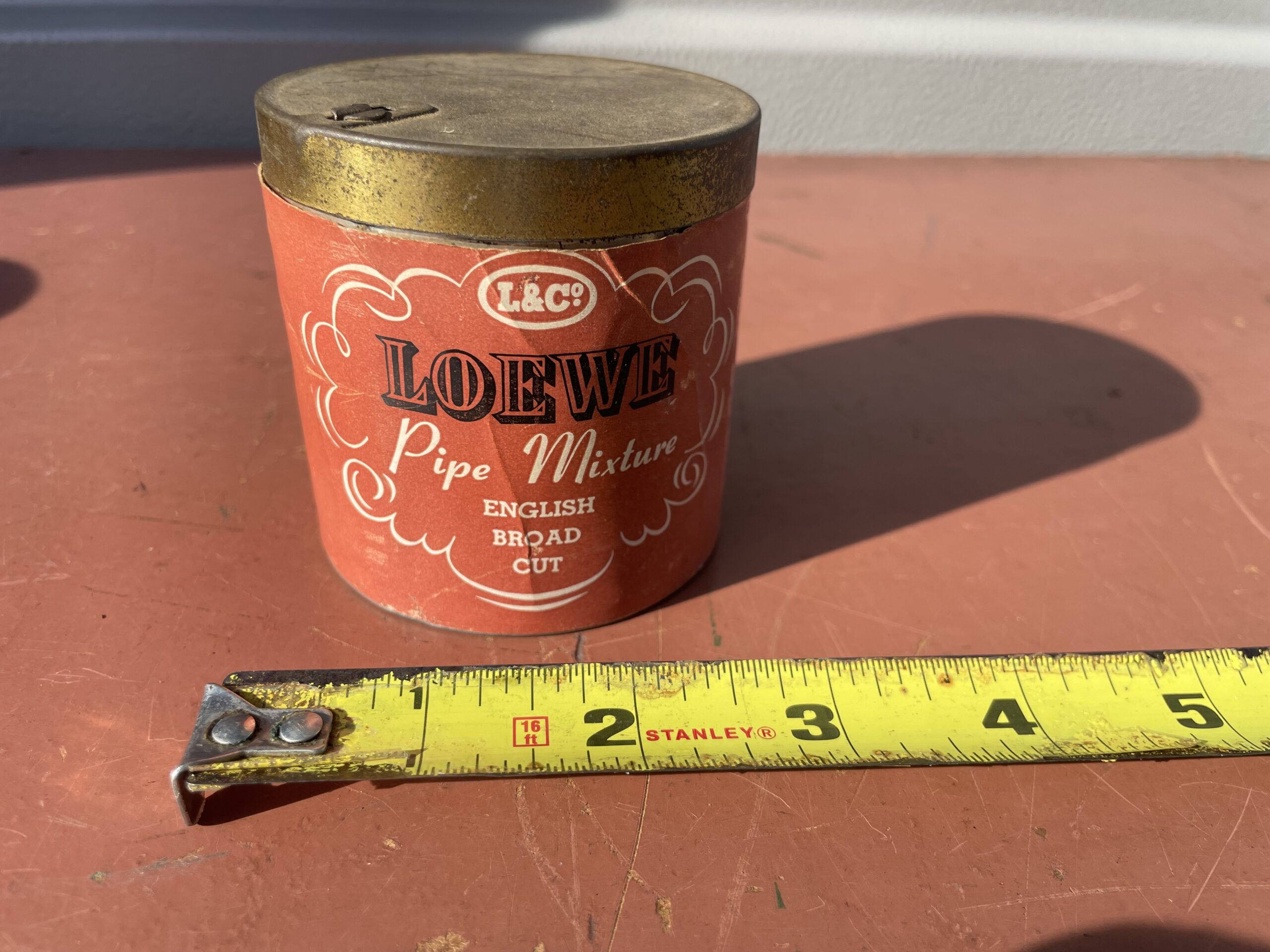1950s Vintage Loewe Pipe Mixture 2 oz tin ,opened, 1/2 full . Smells WONDERFUL. No Reserve! GOOD LUCK!