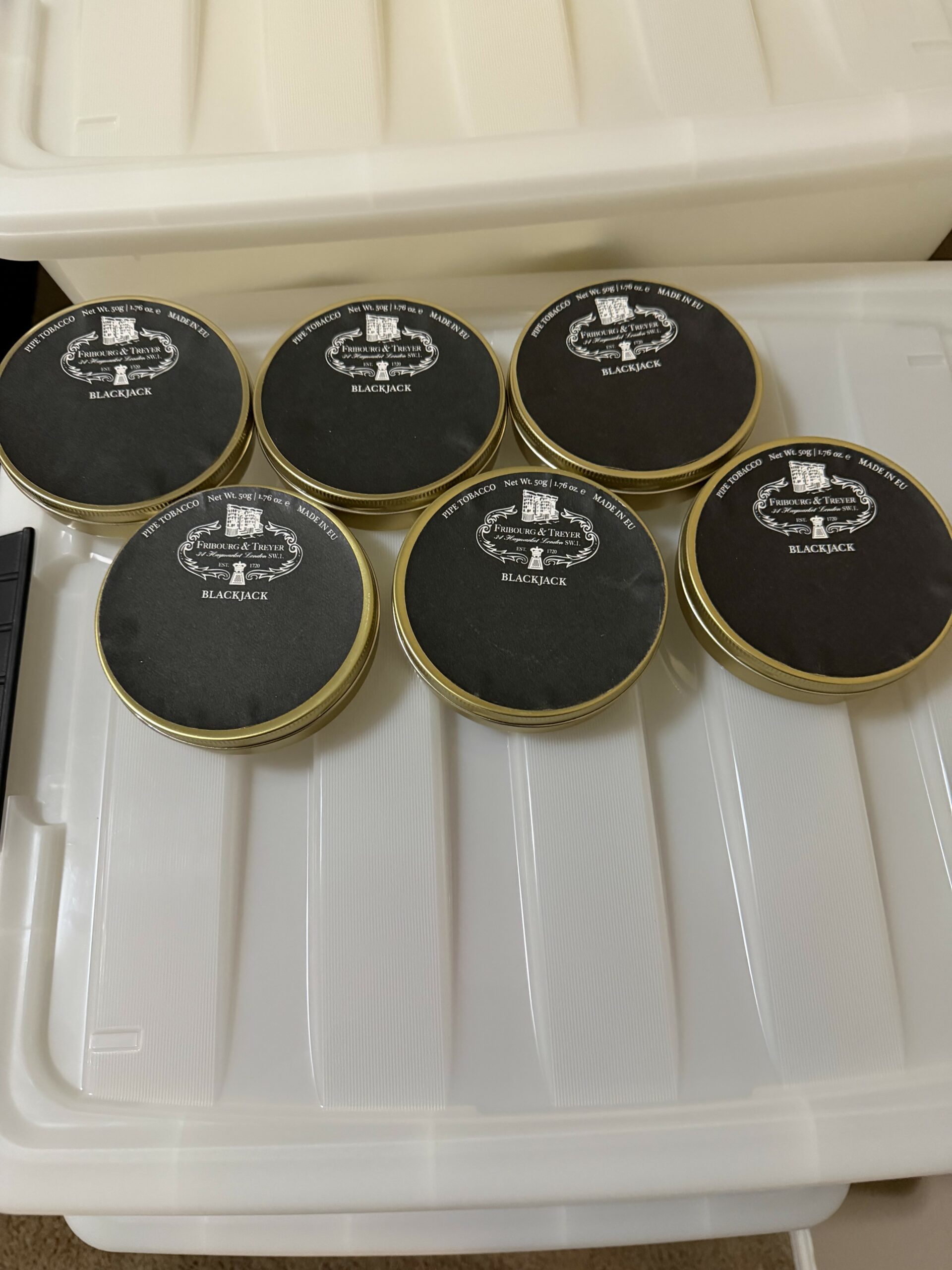 You are Bidding on 6 sealed tins of FRIBOURG & TREYER Blackjack