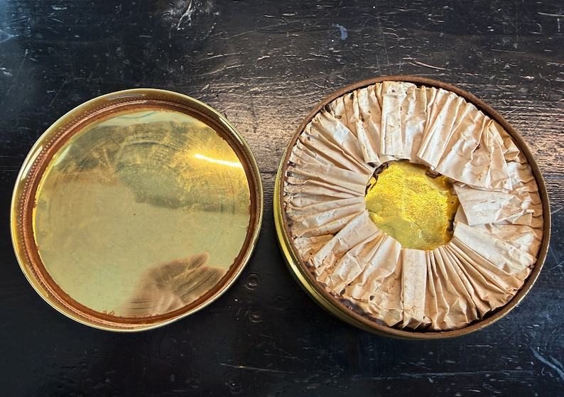 Rare. Full tin. Made in Denmark. Tin has shelf wear. Tin contents are undisturbed, but seal is compromised. Will require rehydration.