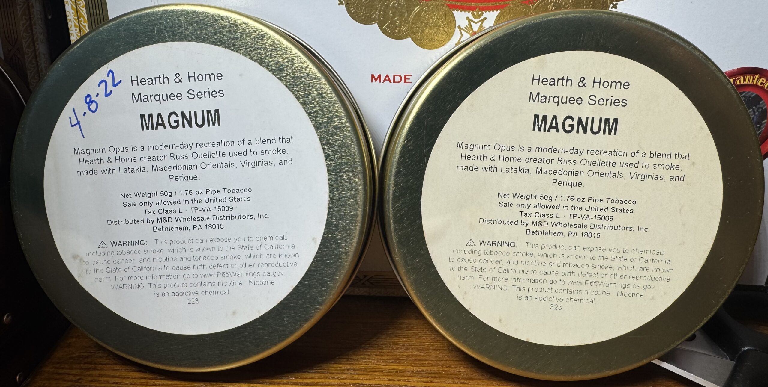 Lot of 2 - Hearth & Home - Marquee Series - Magnum Opus - 50g Sealed Tins - (My Last 2)