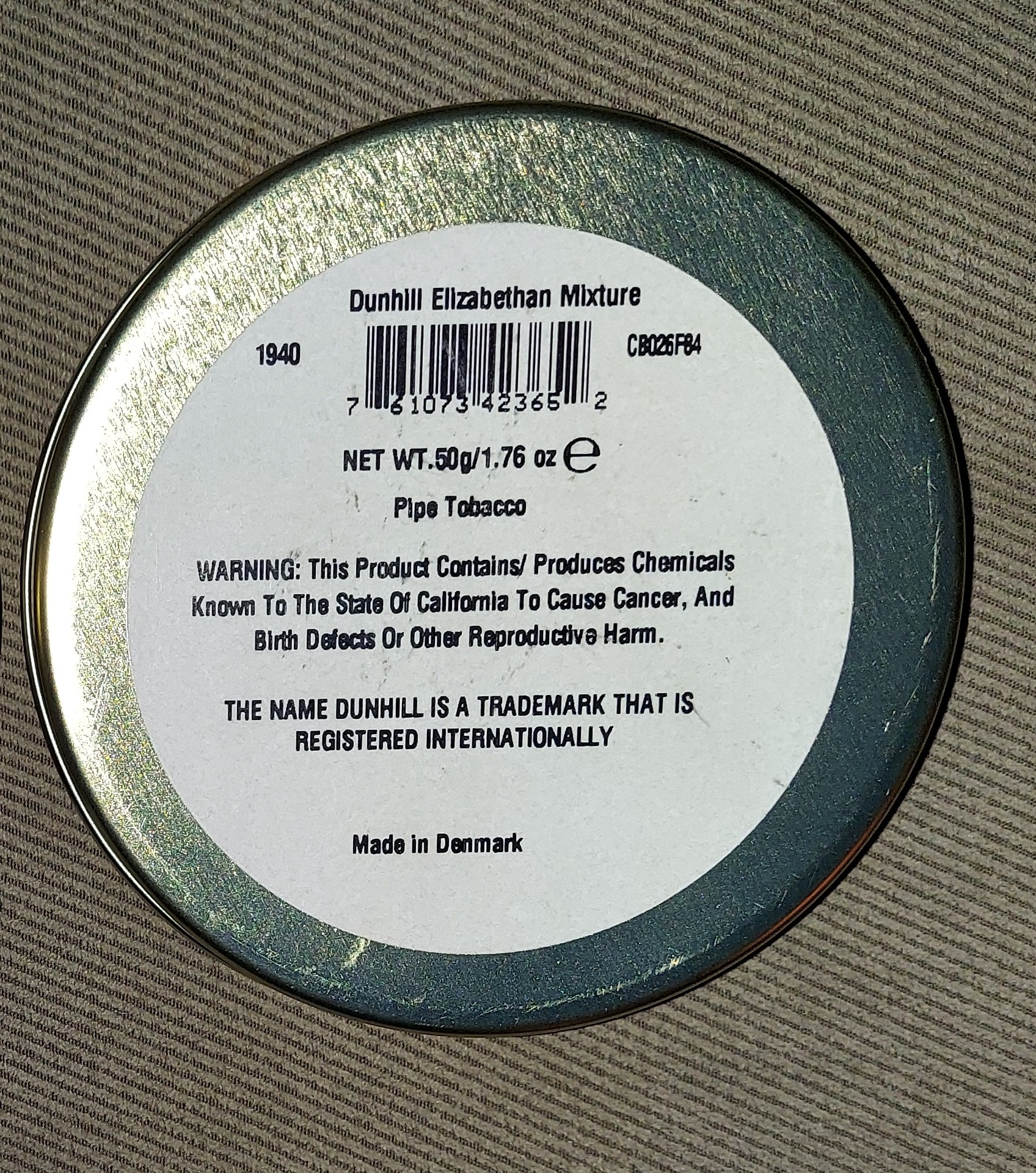 50g tin of Dunhill Elizabethan Mixture. Date code 2016.