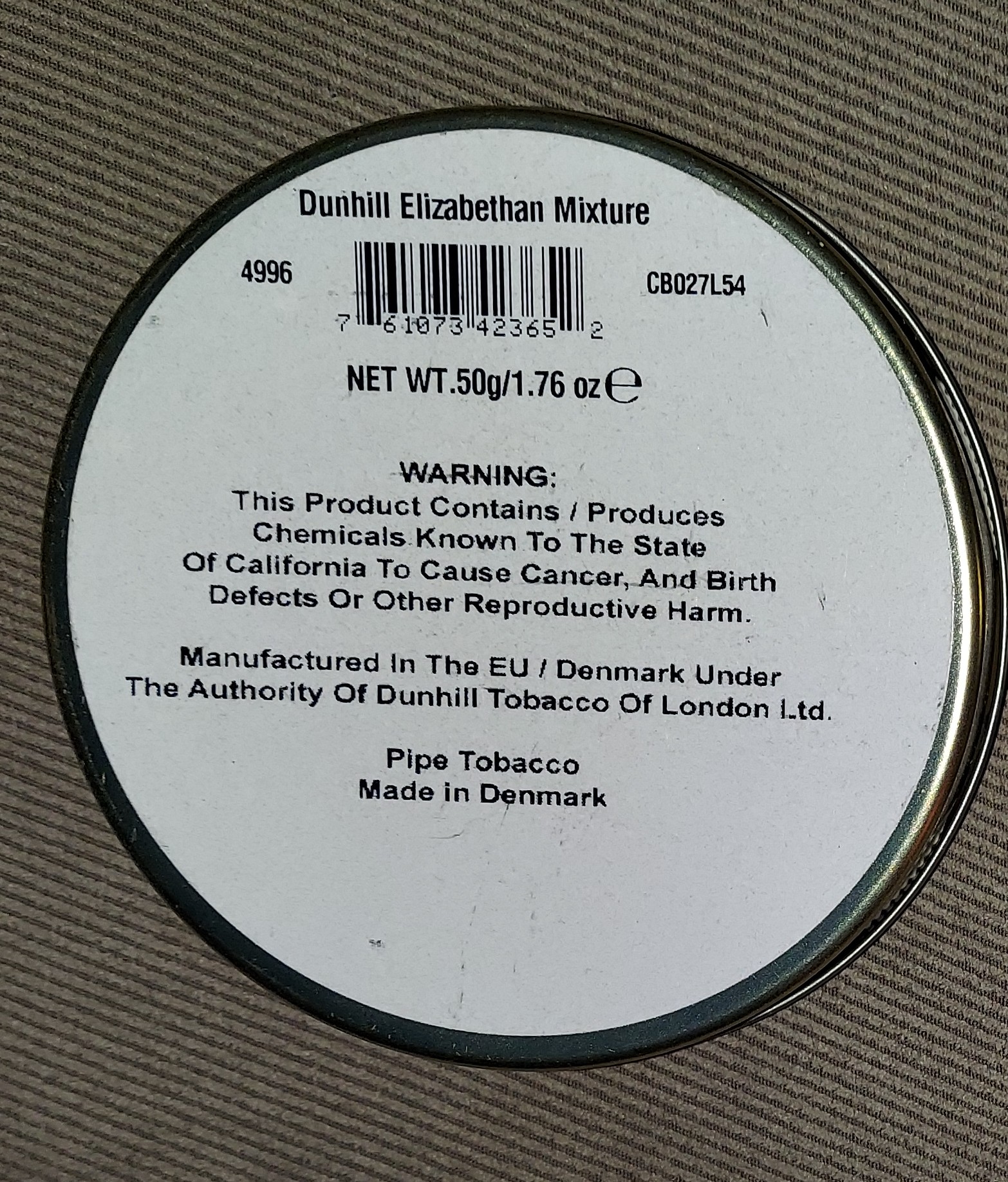 50g tin of Dunhill Elizabethan Mixture. Date code 2017.