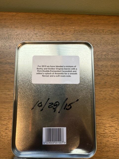 Samuel Gawith have blended a mixture of burley & golden Virginia leaves with a rich double-fermented sweet black cavendish, added a splash of amaretto to give a smooth flavoured tobacco with a soft room note. This pipe tobacco is ribbon cut and presented in a limited edition collector's tin. 100GM VACUUM SEALED 10/29/15