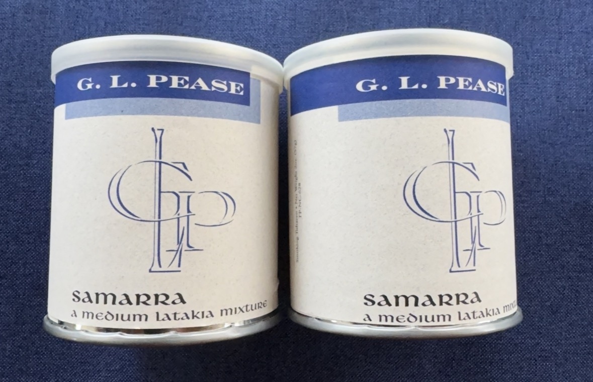 Two 2oz tins of Samarra tobacco, a medium Latakia mixture from G.L. Pease. This tobacco has been stored in a cooler since 2002. WOW!!!!! I have extras so I hope you enjoy it as much as I do!!