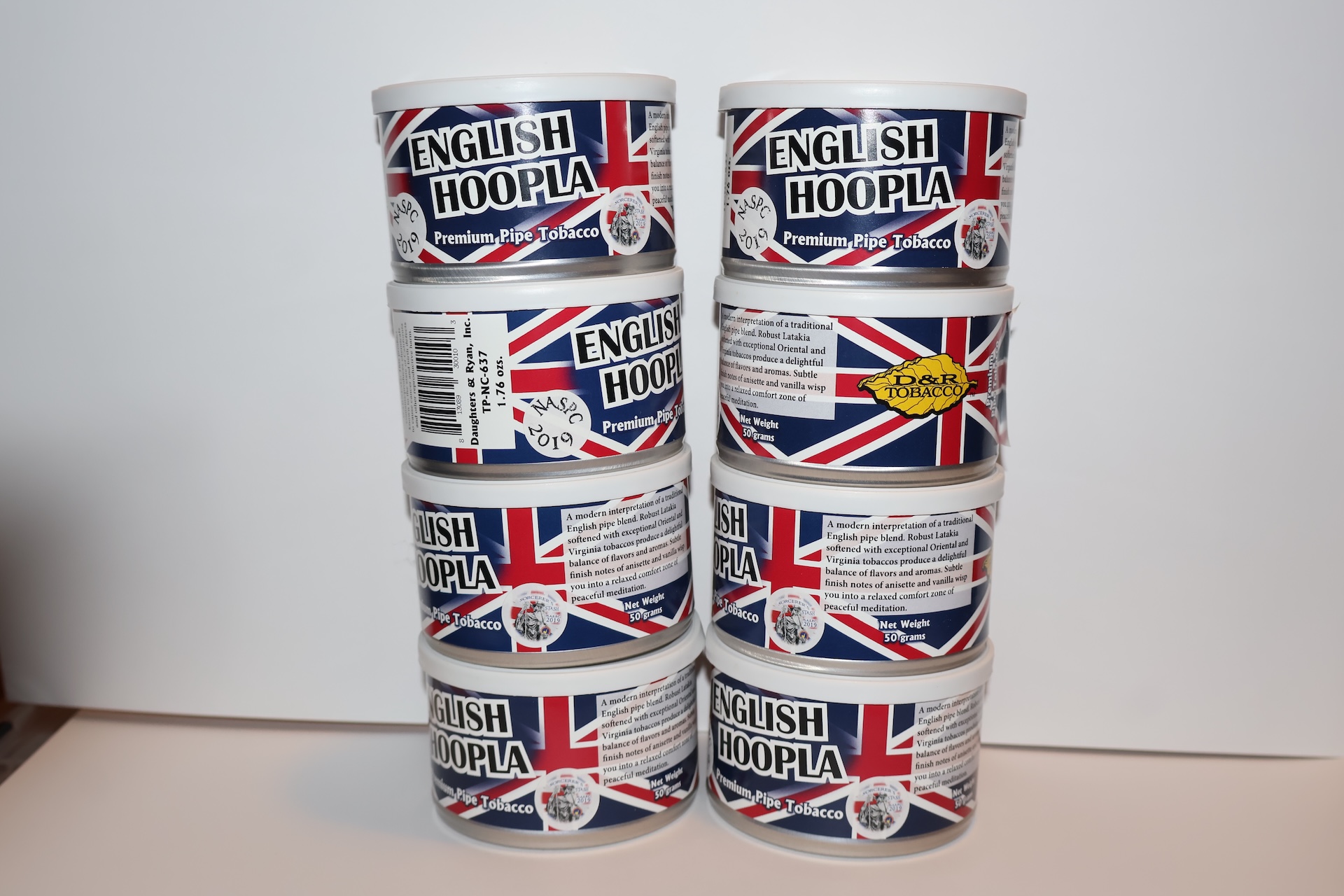 Eight tins of 2019 English Hoopla from the 2019 NASPC club show.