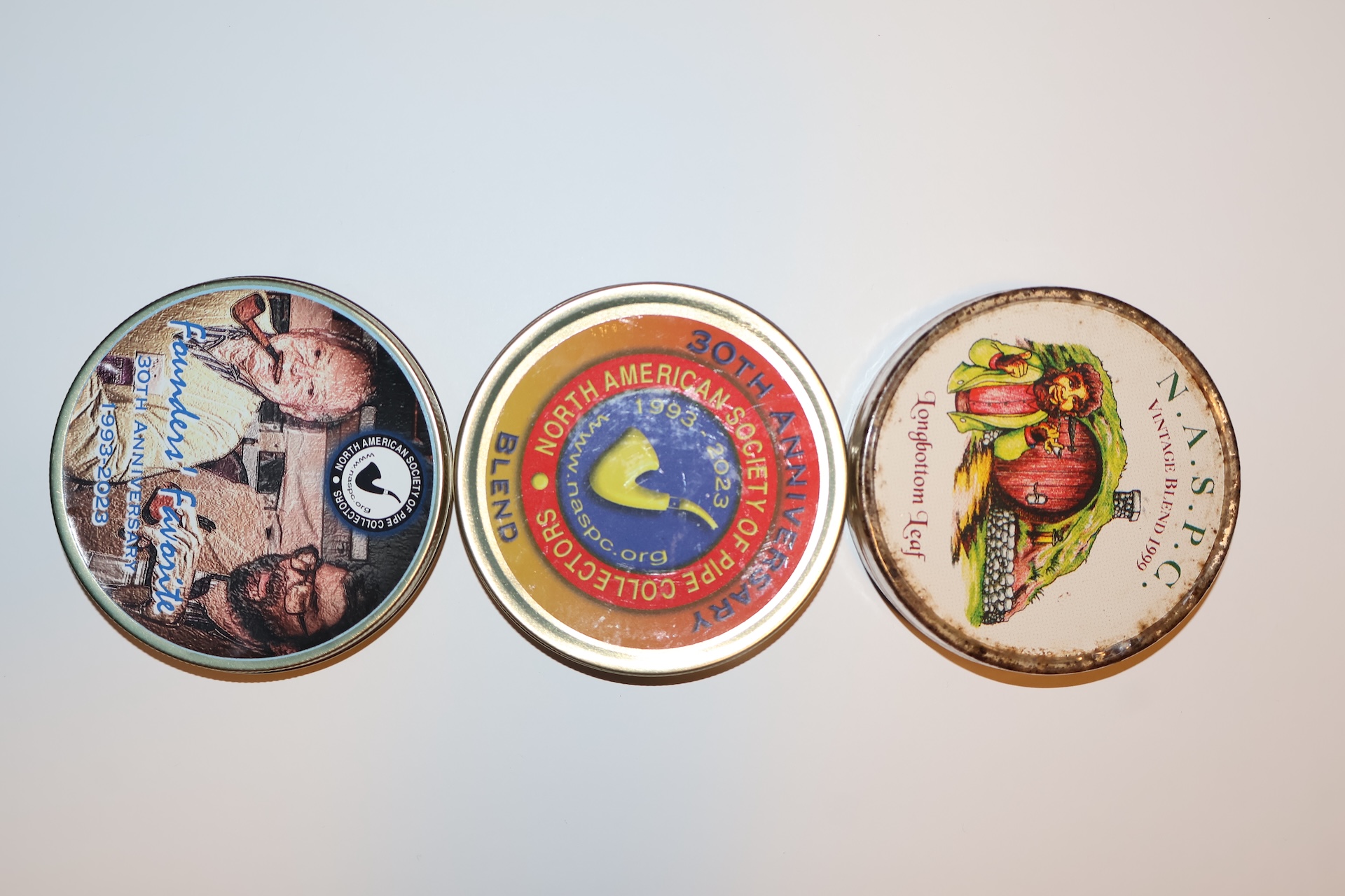 Five different tin's of NASPC club tobacco's.