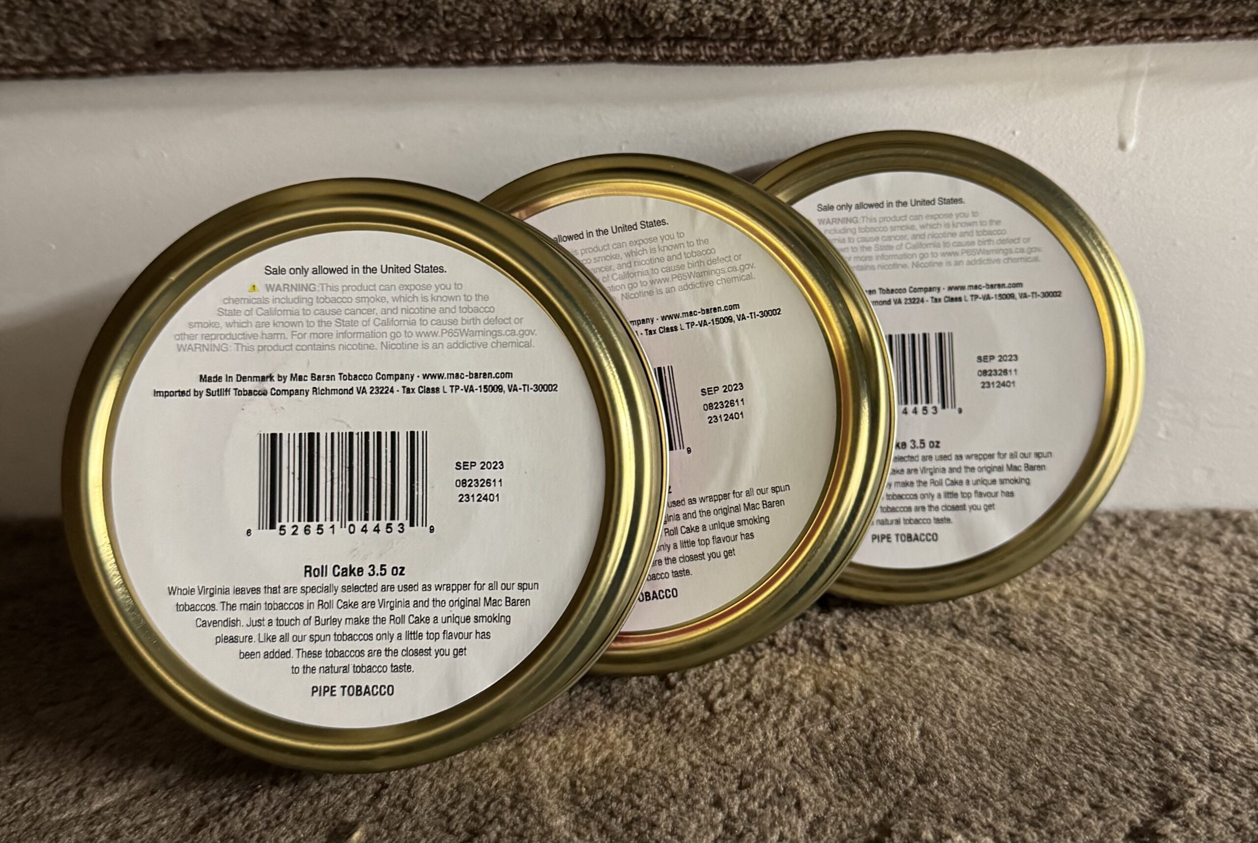 Lot of 3 2023 Mac Baren Roll Cake Spun Cut 3.5oz Tins