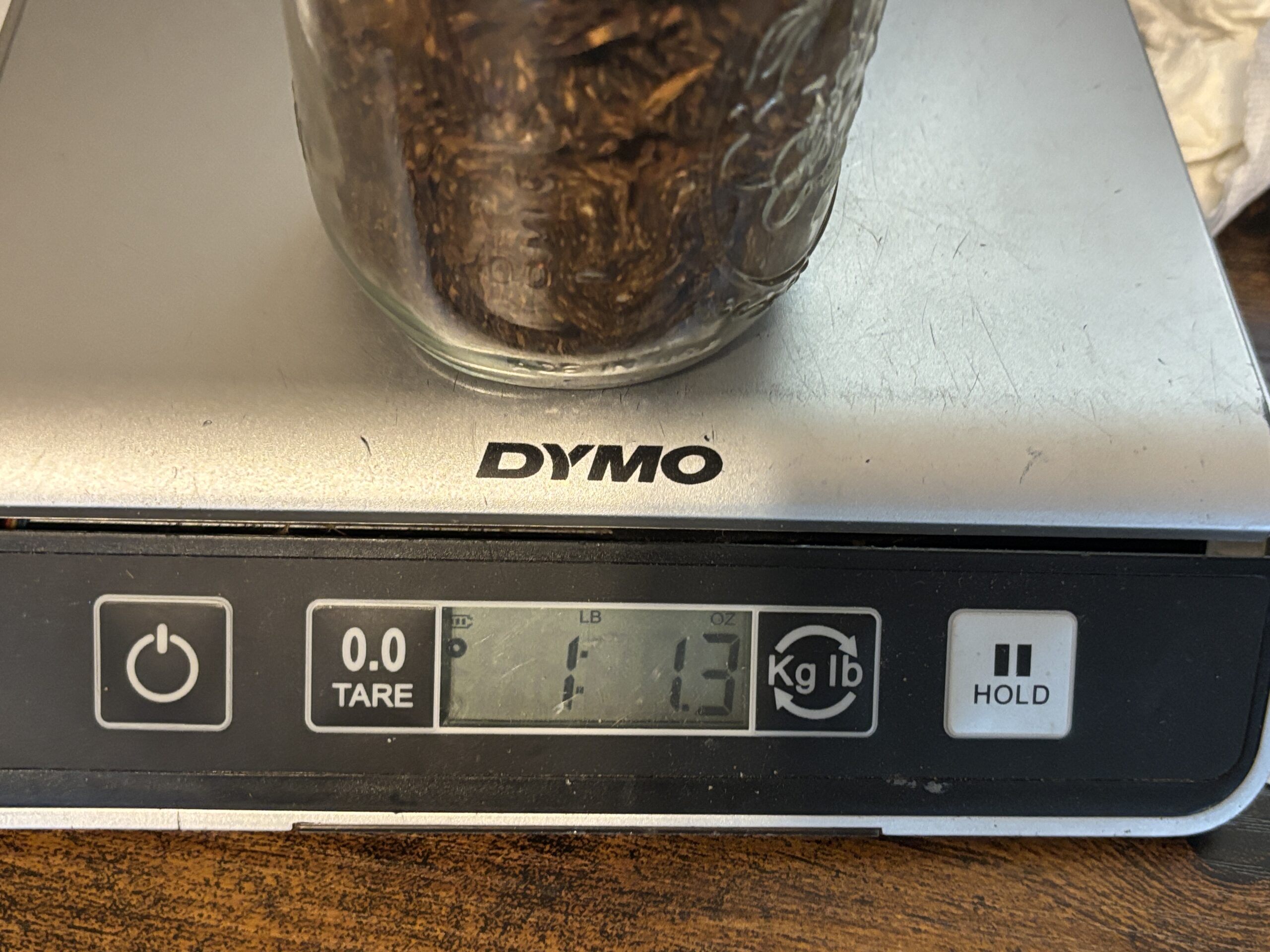 Total weight of this Jar is 1lbs. 1.3oz. as shown in the picture.