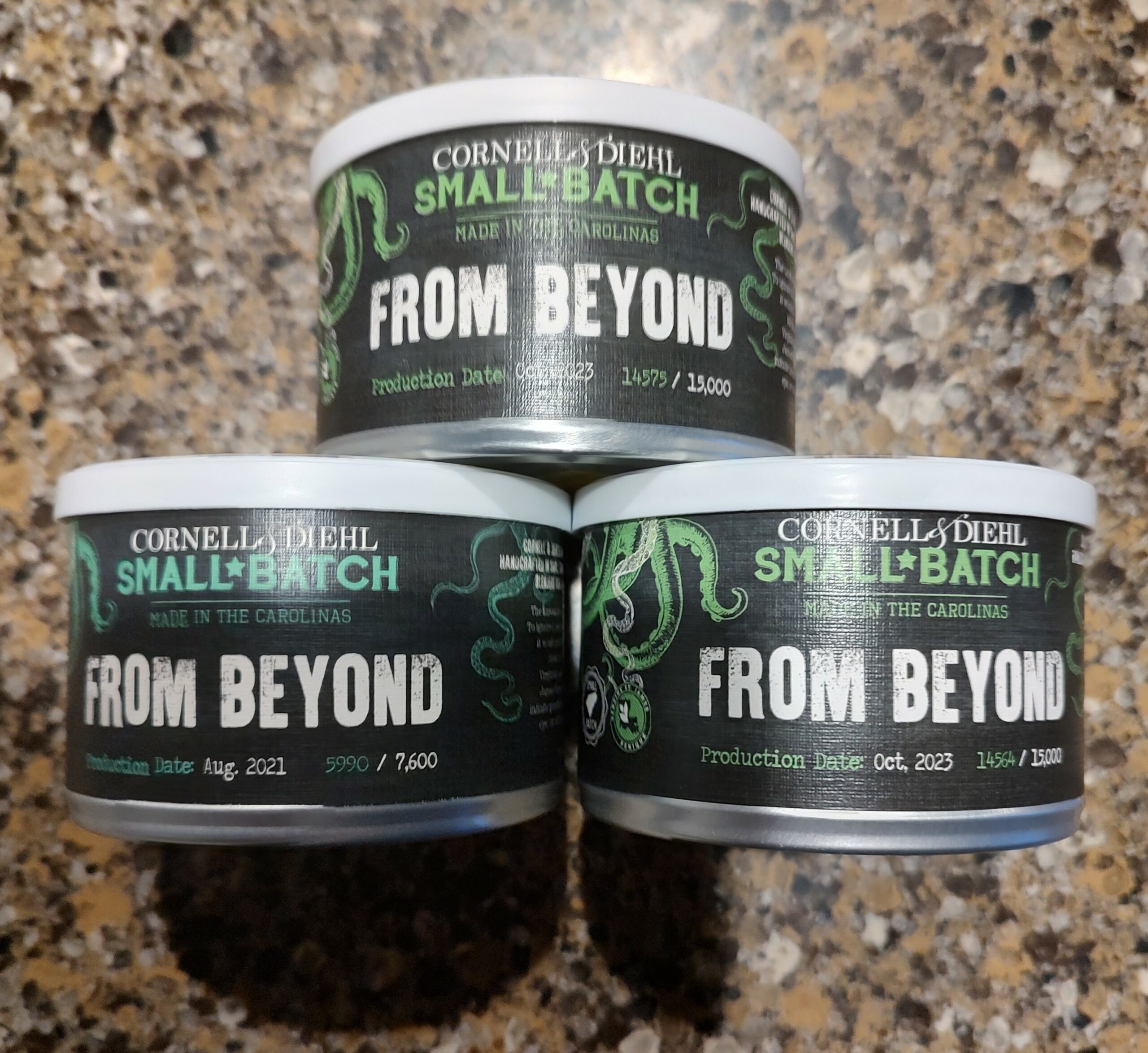 This auction is for two 2 oz. sealed tins from 2023 and one 2 oz. sealed tin from 2021 of From Beyond by Cornell & Diehl.