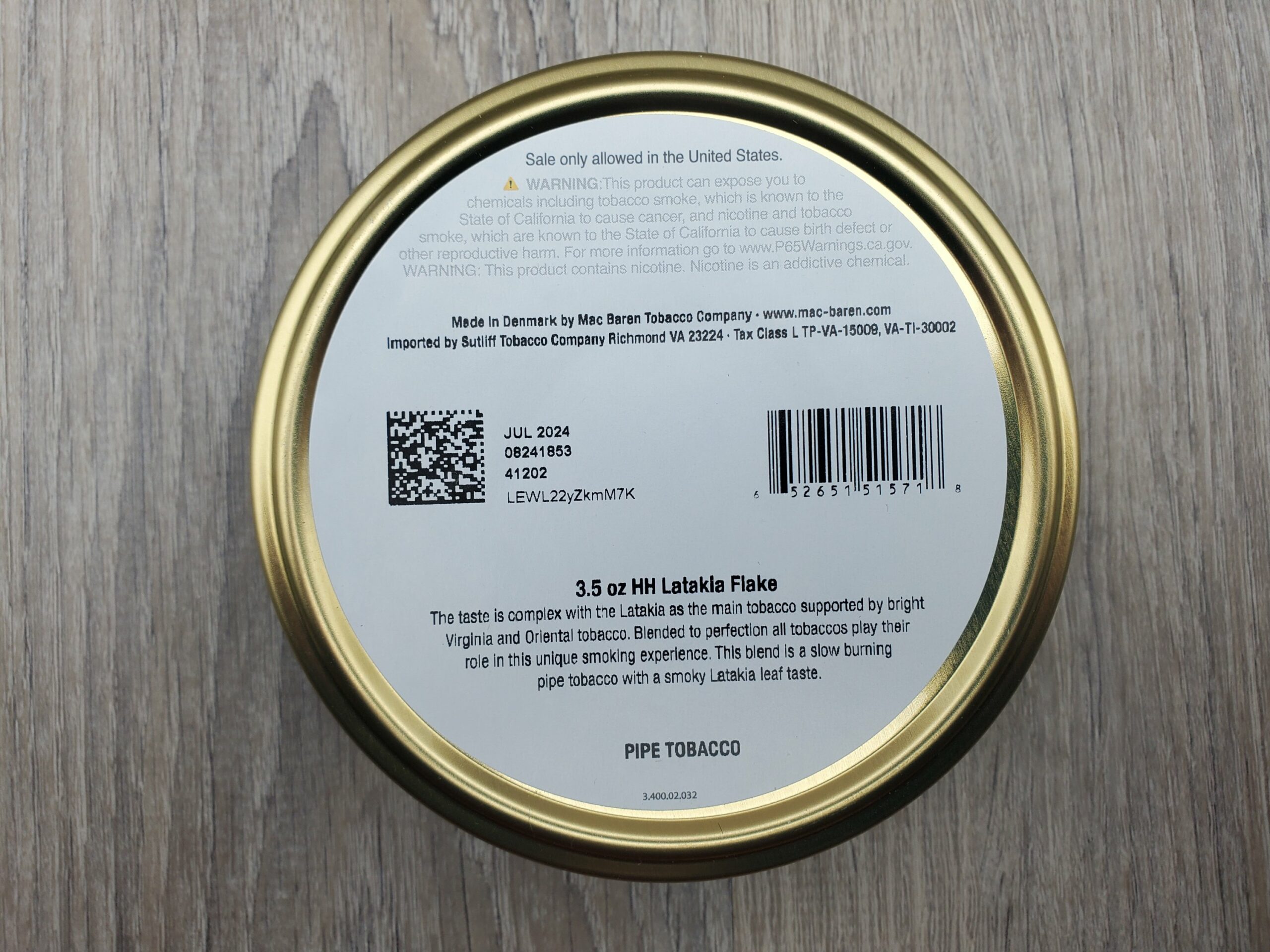 Mac Baren HH LATAKIA FLAKE - 3.5oz LAST ONE