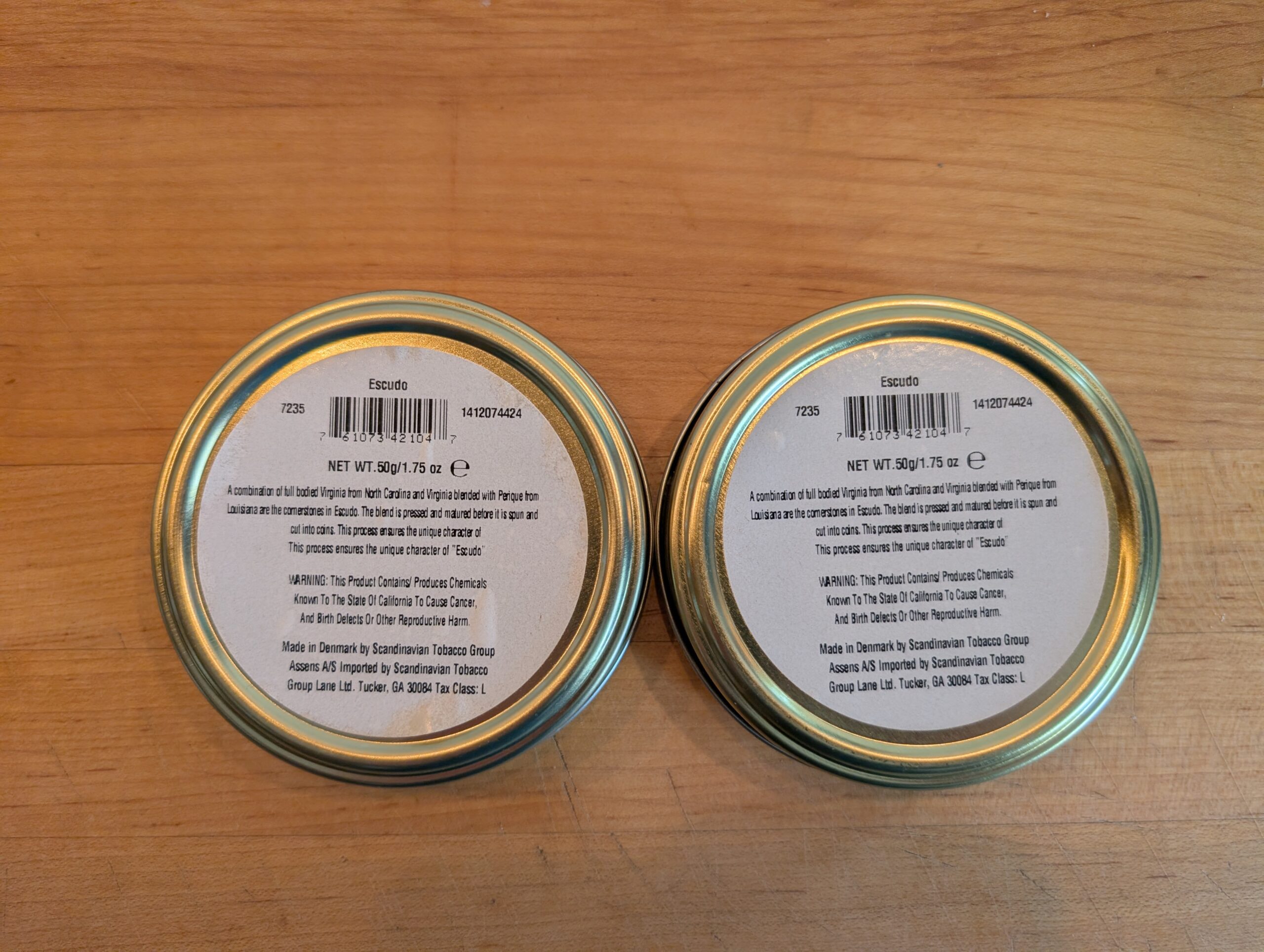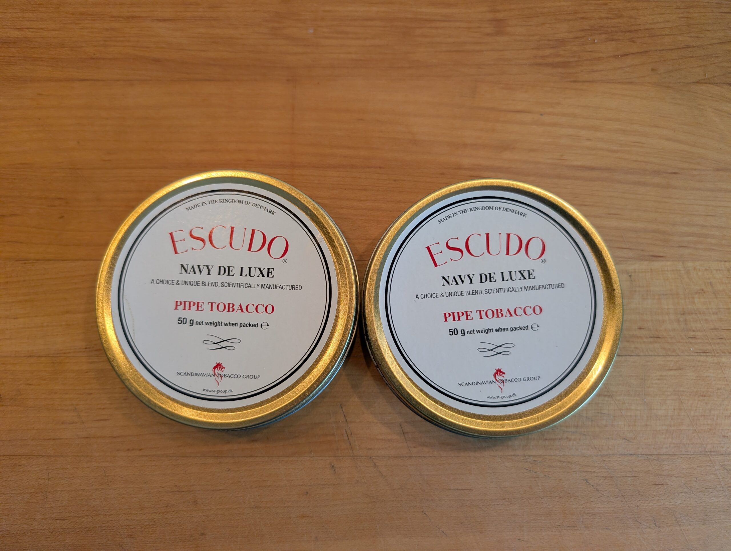 2 tins of Escudo Navy De Luxe purchased in 2014