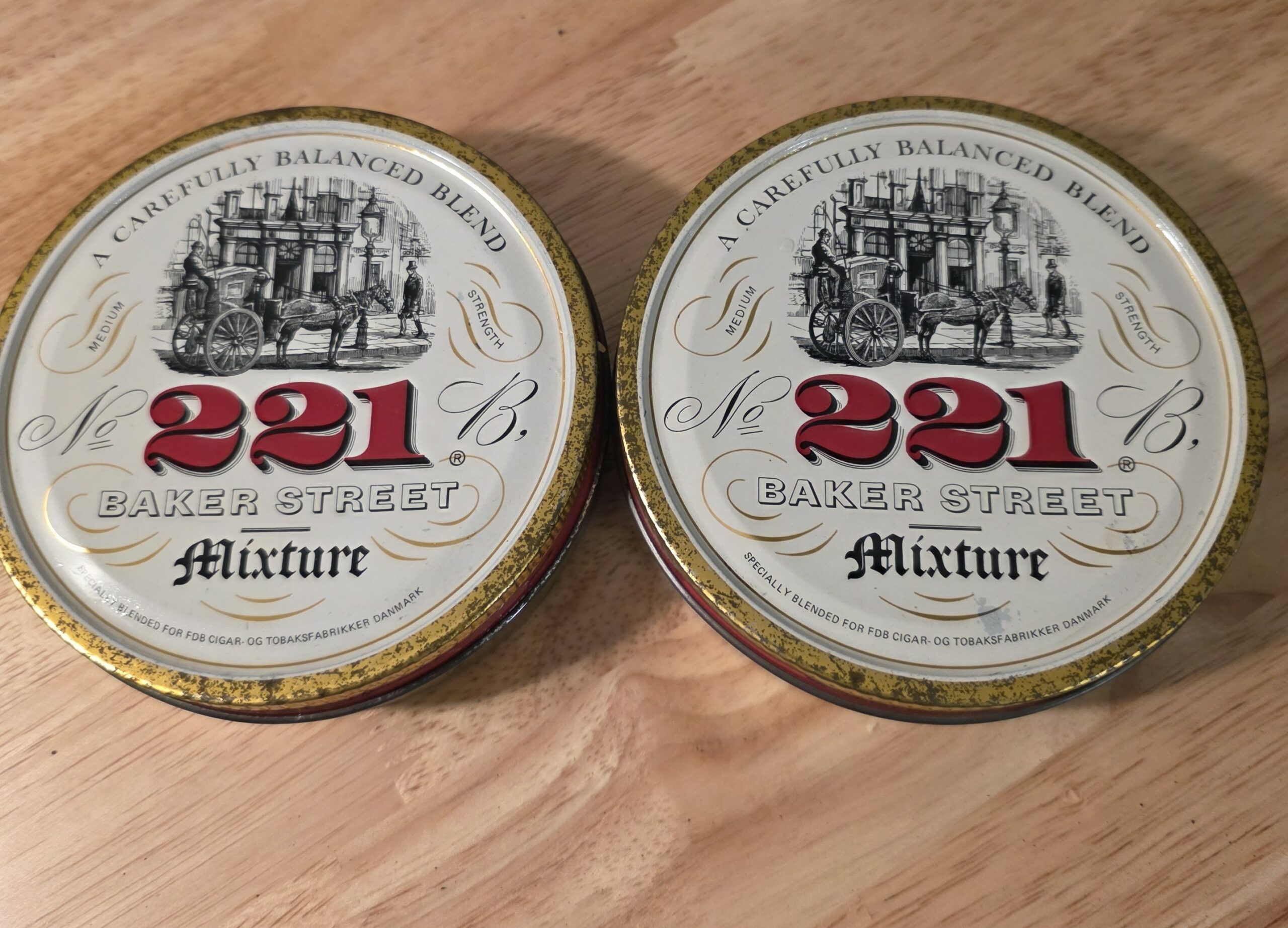 A unique treasure found in a local pipe enthusiasts cellar. The contents of the two tins of FDB Cigars's NO. 221B Baker Street Mixture have remained sealed. Tin has been opend to verify contents are intact and unpuffed. Approximate manufacturing late 1970s to early 1980s. Please take a moment to look at my other finds from this local estate.