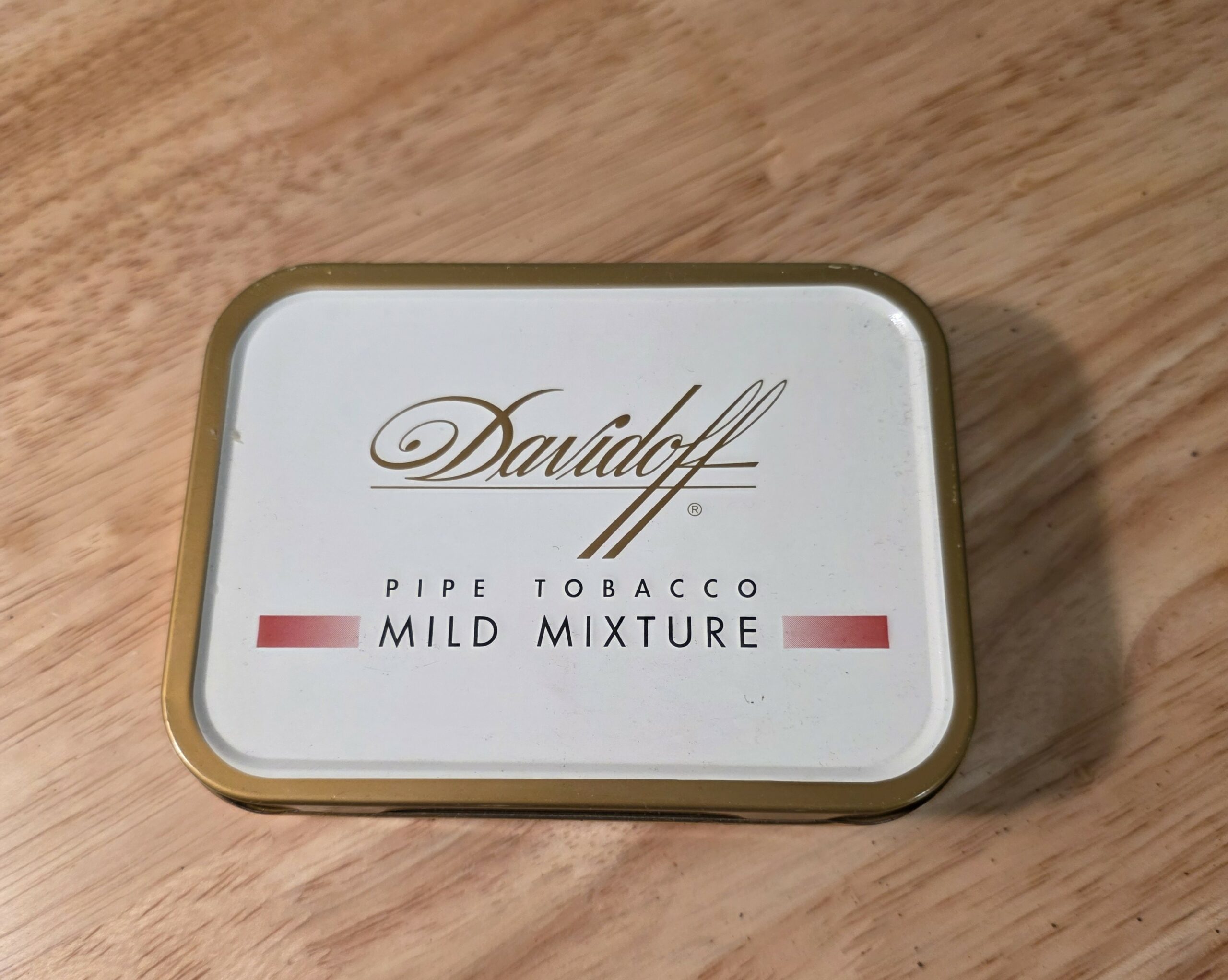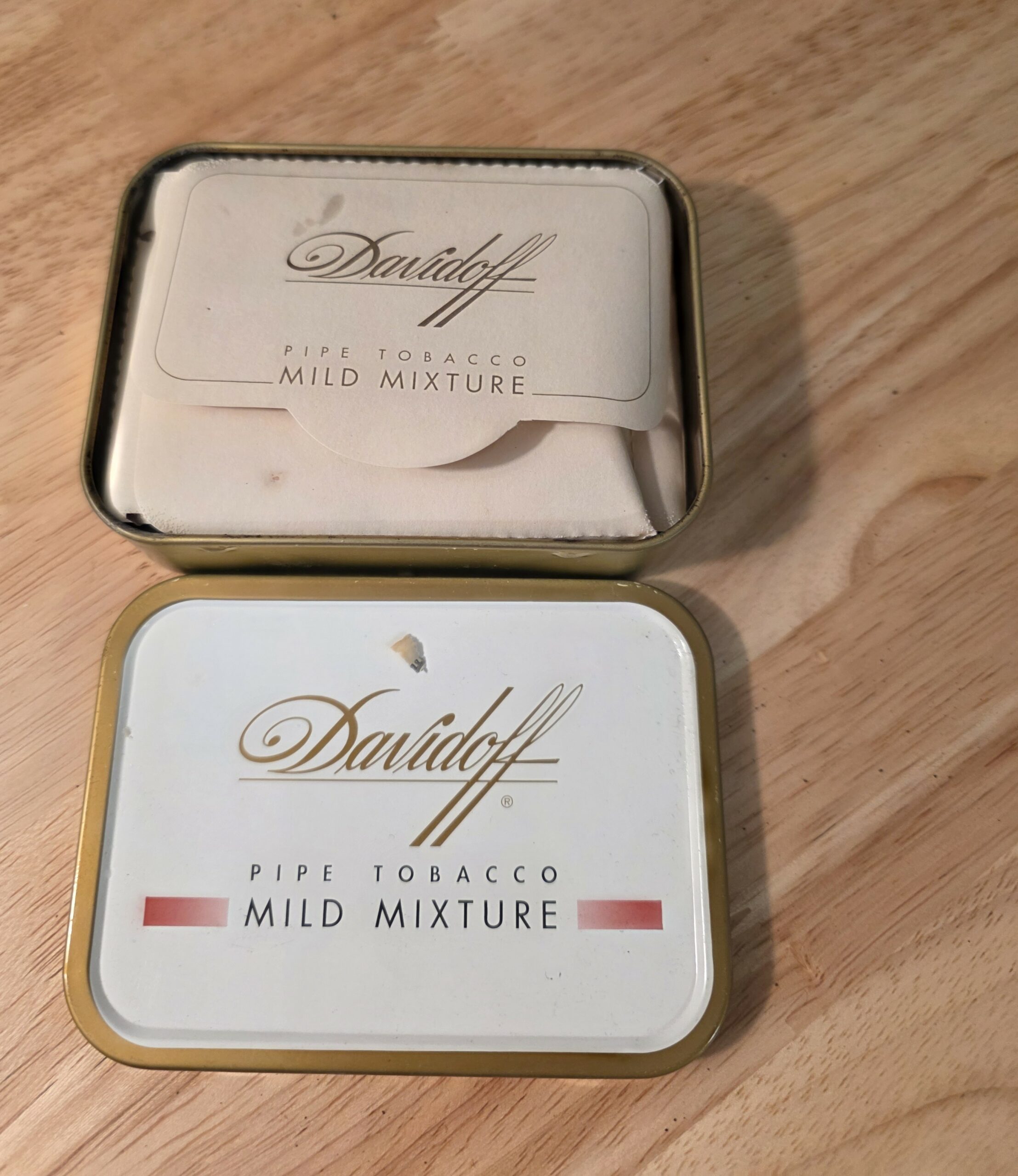 A unique treasure found in a local pipe enthusiasts cellar. The contents in this tin of Davidoff Mild Mixture has remained unused with the original paper cover. This tobacco was not vacuum sealed when produced. The tin has been opened to verify contents are intact and unpuffed. Approximate manufacturing late 1980s to early 1990s. Please take a moment to look at my other finds from this local estate.