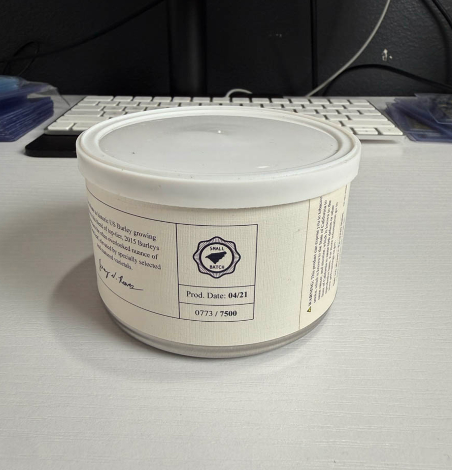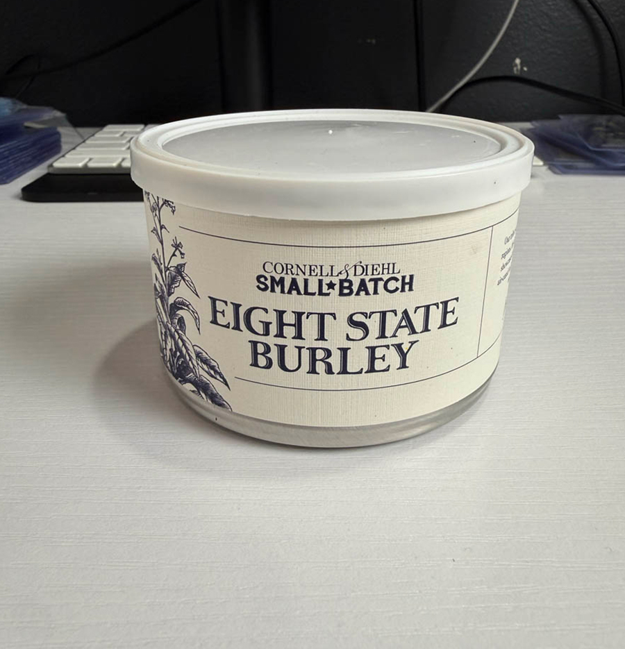 This auction is for one tin of C&D Small Batch Eight State Burley. This tin was produced in April of 2021. This tin was purchased and cellared by me in May of 2021.