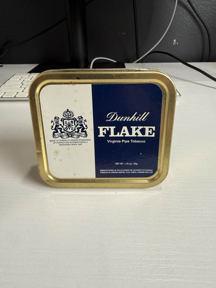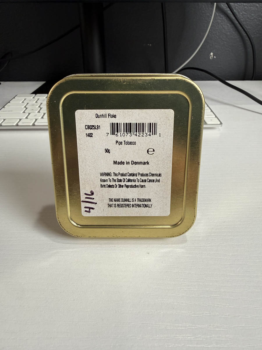 This tin of Dunhill Flake is the older square style, dated 2015 and cellared in April of 2016. Tin date code CB025L91.
