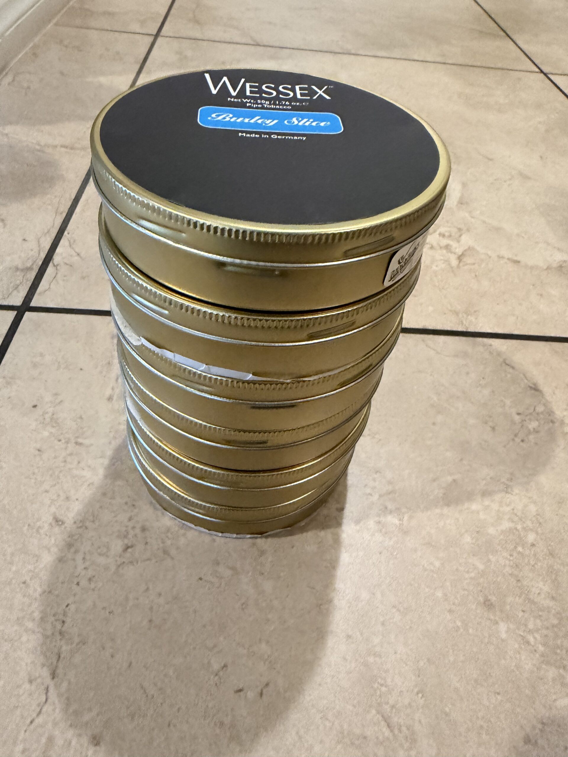 You are bidding on six sealed tins of Wessex Burley Slice from 2024.