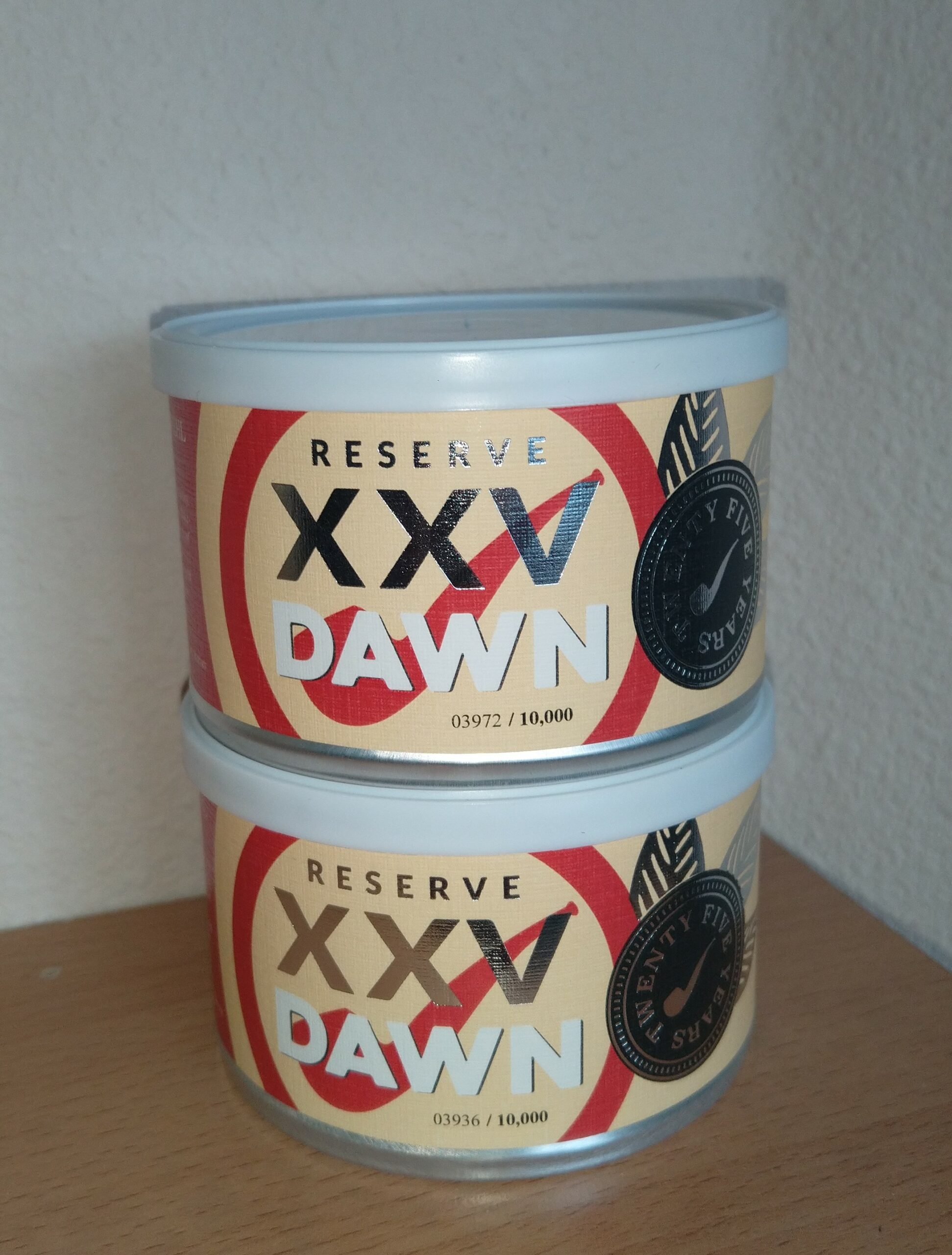 Two sealed tins of XXV Reserve Dawn.