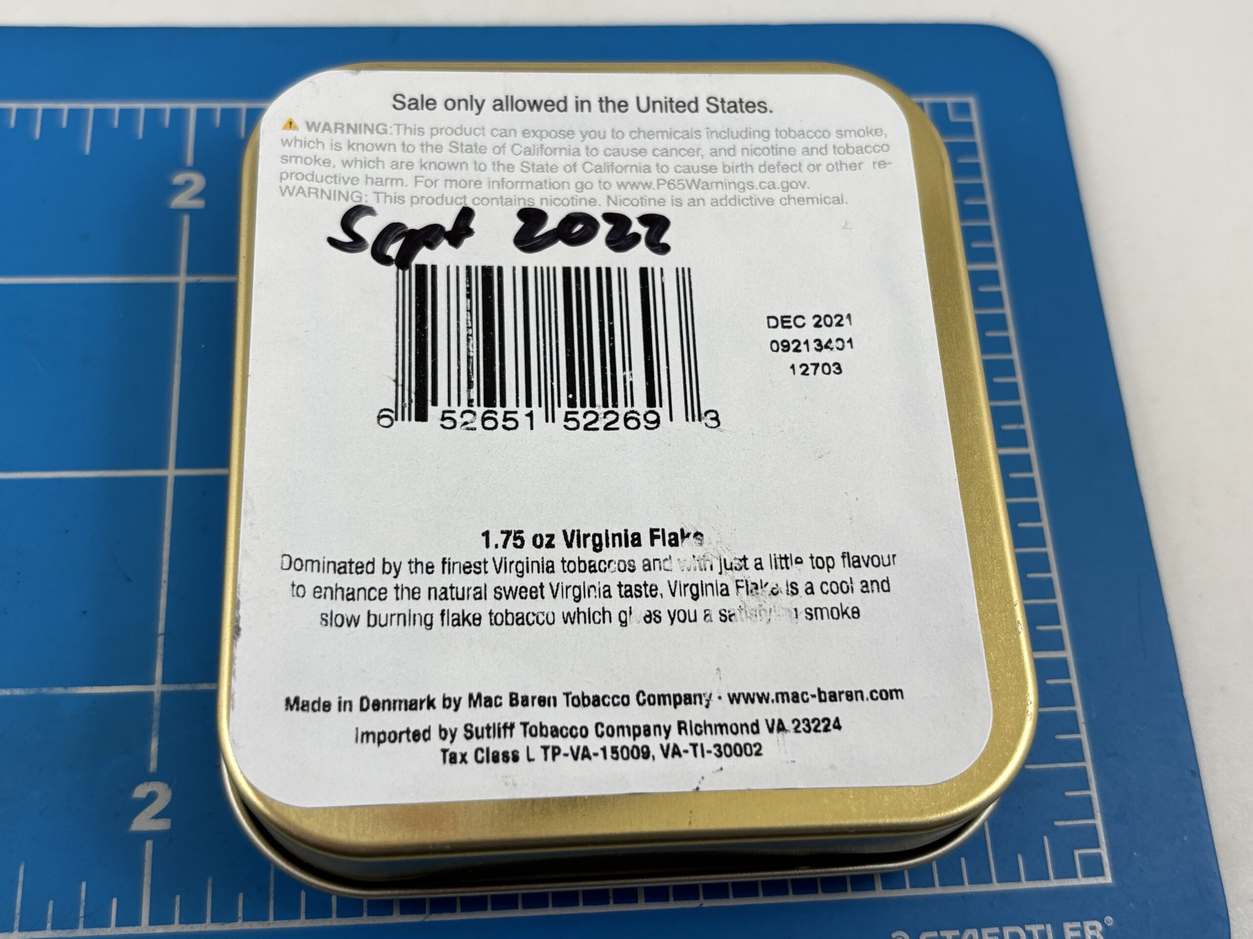 Excellent Sealed 2022 Mac Baren Virginia Flake Cut 1.75oz. Tin