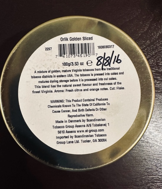 Orlik Golden Sliced- 3.5 oz big tin- 8/2016