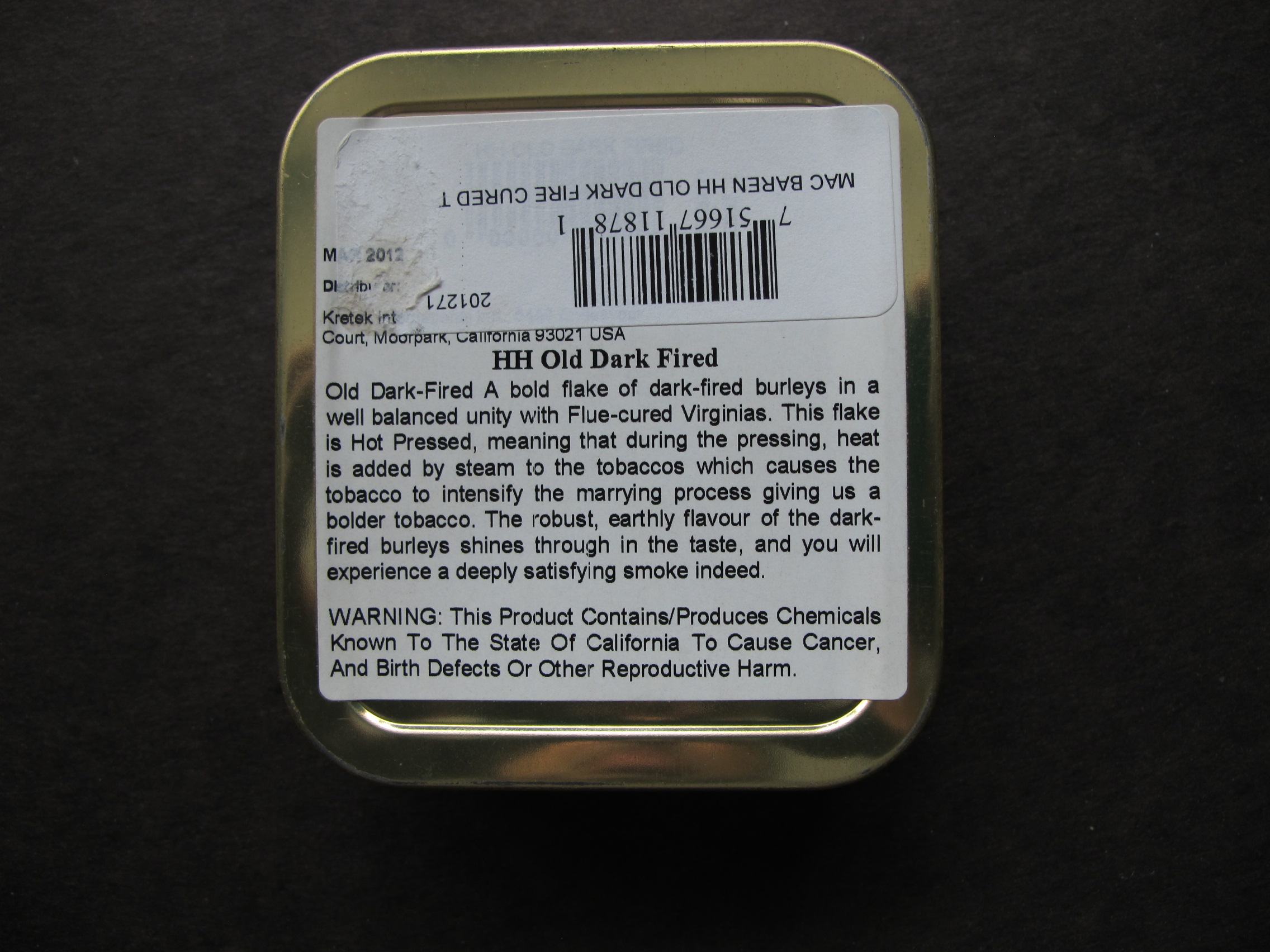 2012 Mac Baren's HH Old Dark Fired 3.5 Ounce Tin