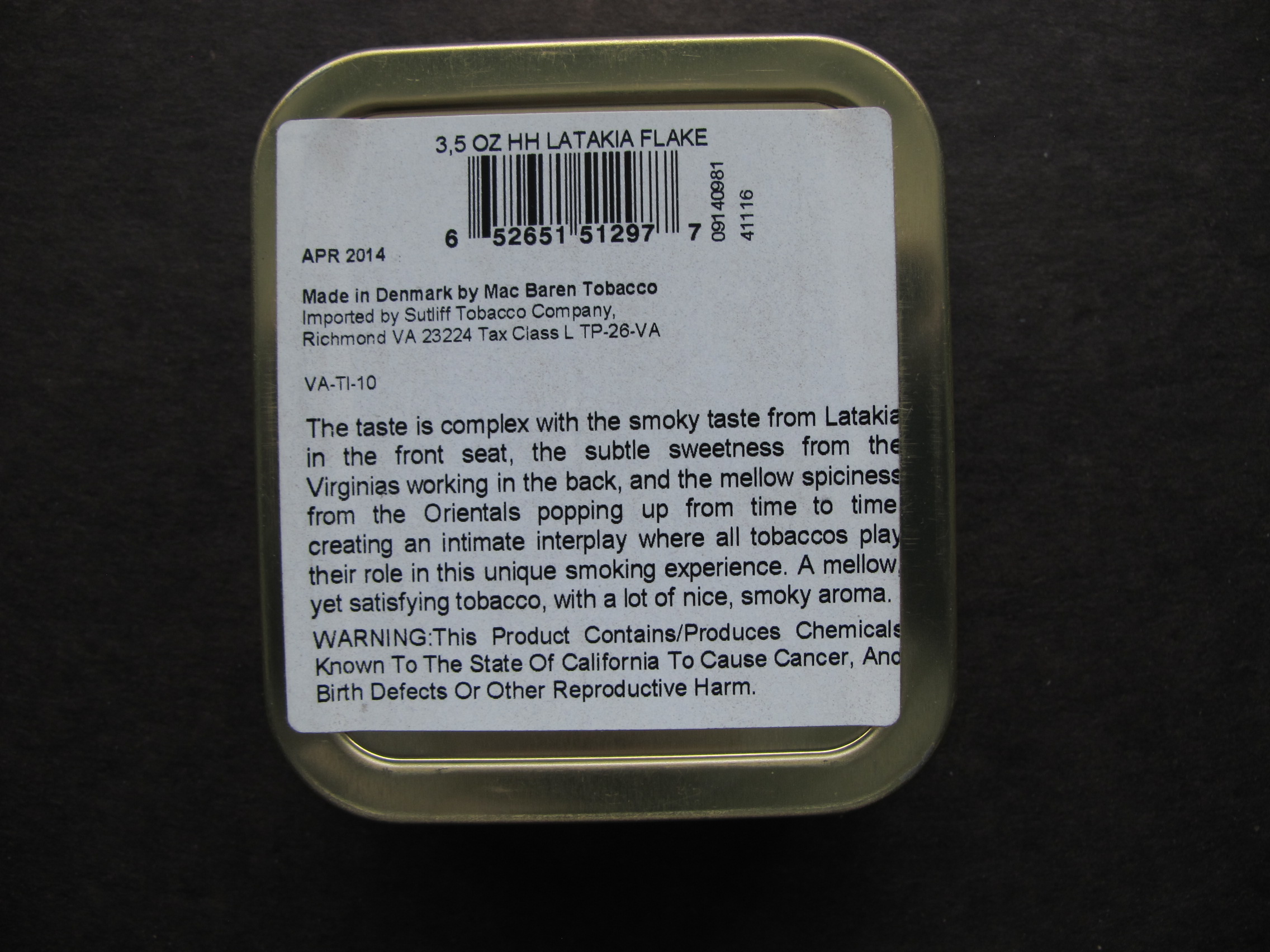 2014 Mac Baren's HH Latakia Flake- #-1/2 Ounce Tin