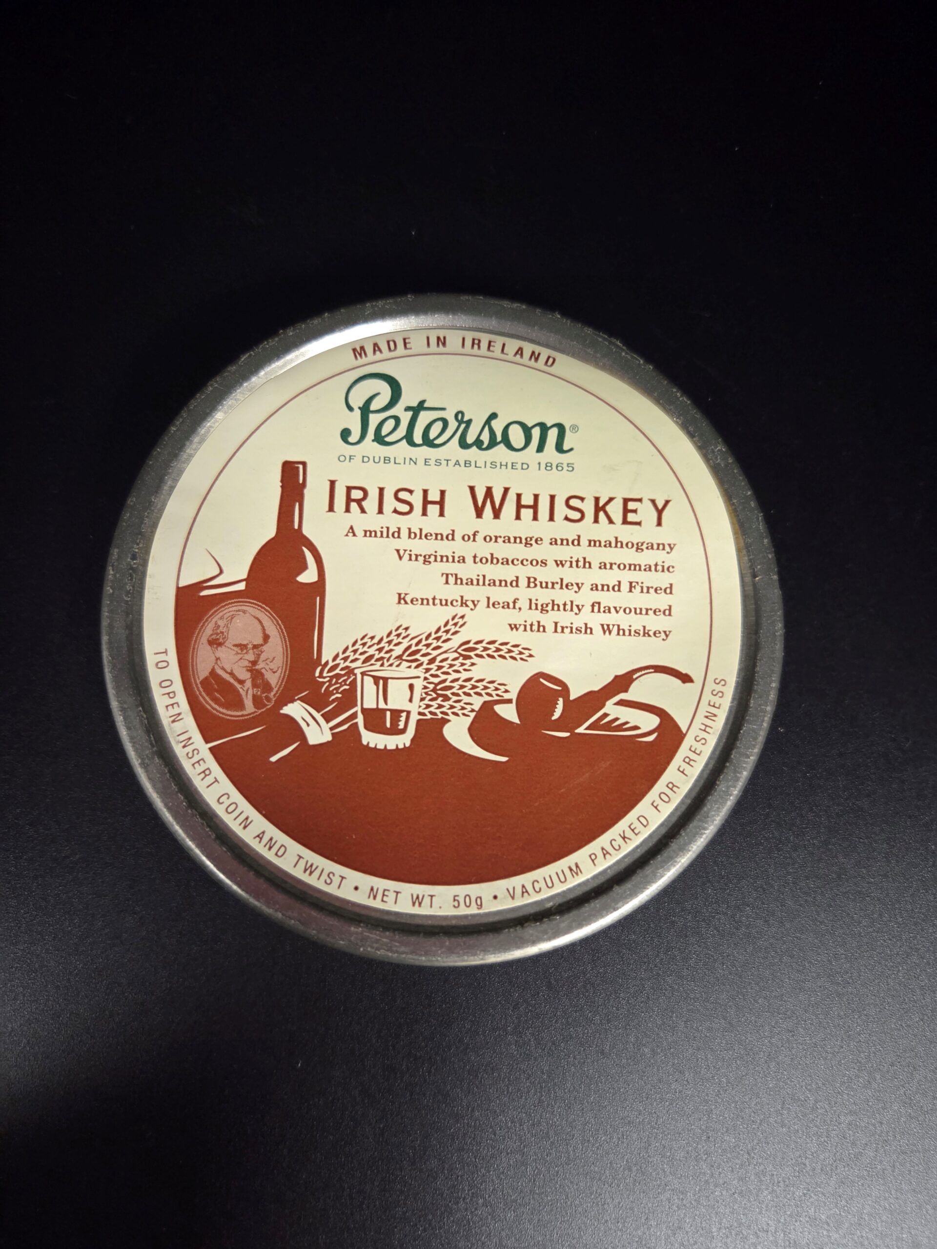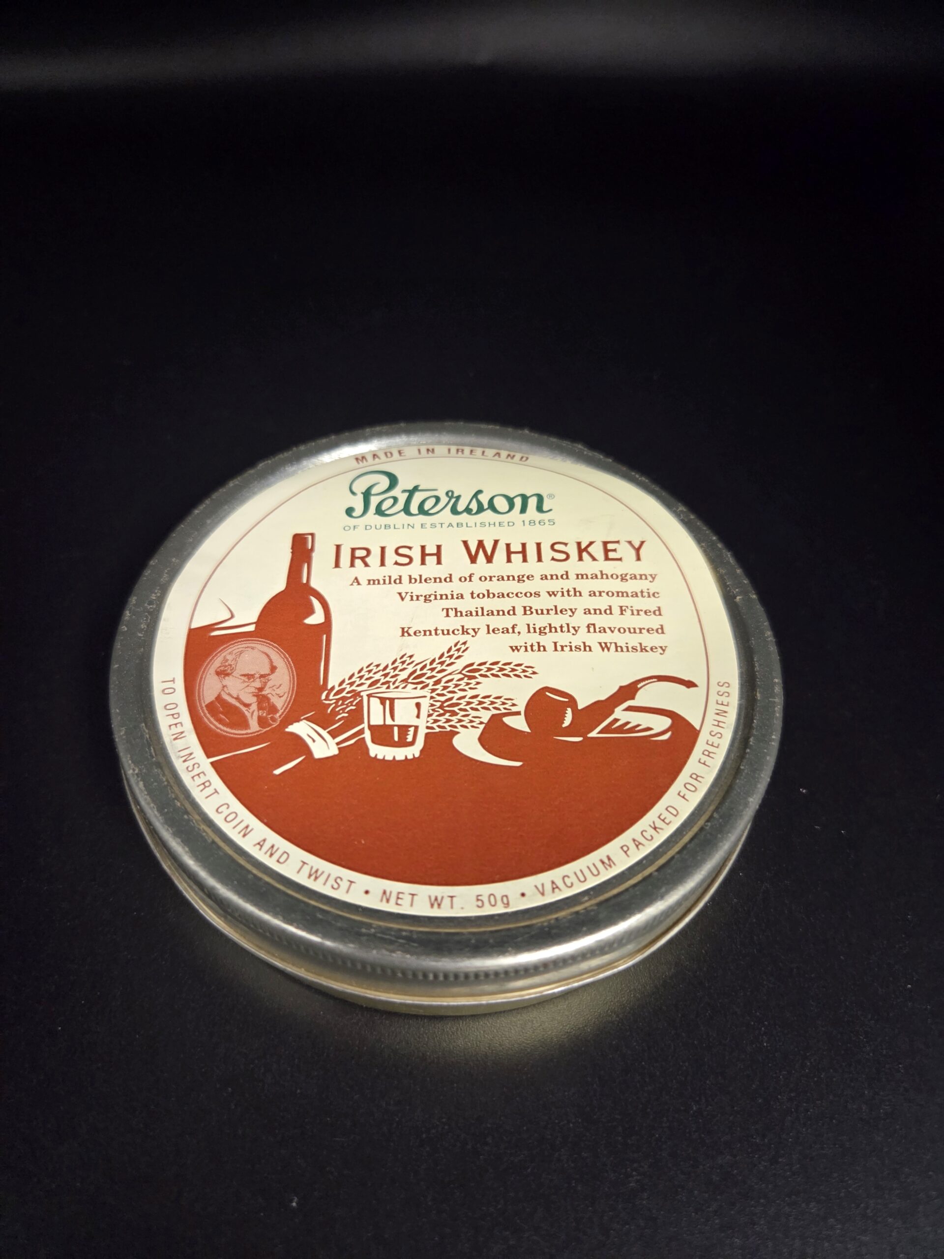1 x 50g tin. Expect a traditional Irish ready rubbed blend that incorporates various selected Virginias. Kentucky fired, Indian cured and aromatic Thai Burley are also added. A light spray of Irish Whiskey essence gives this tobacco its unique aroma. New and unopened. Front sticker is slightly lifted, but intact. Sealed for freshness and kept in temp controlled room.