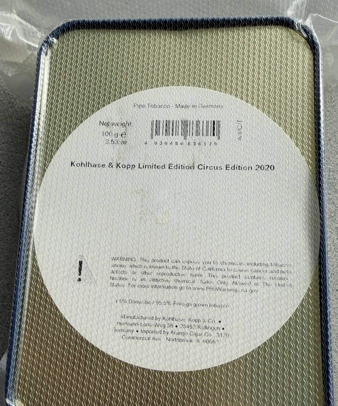 This is a limited edition Welcome to the Circus tin from 2020. 100 grams of tobacco in a great Collectors tin. Vacuum sealed.