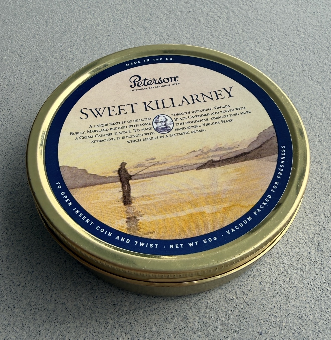 50 gram vacuum sealed tin of Sweet Kilarney by Peterson of Dublin.