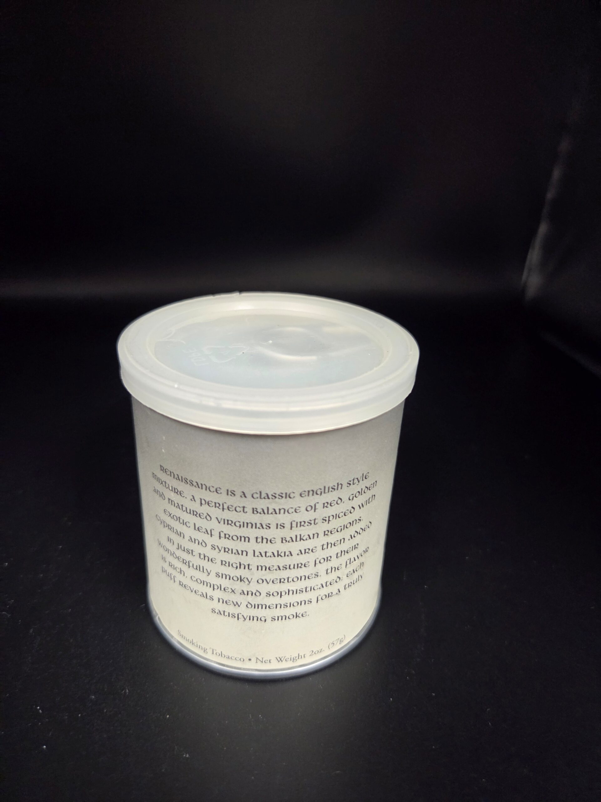 1 x 2oz tin. Expect a classic medium English mixture, rich in Oriental tobaccos, a good measure of Cyprian and Syrian Latakias, and just enough golden, red and matured Virginias to provide substance to the smoke. New and unopened. Sealed for freshness and kept in temp controlled room.