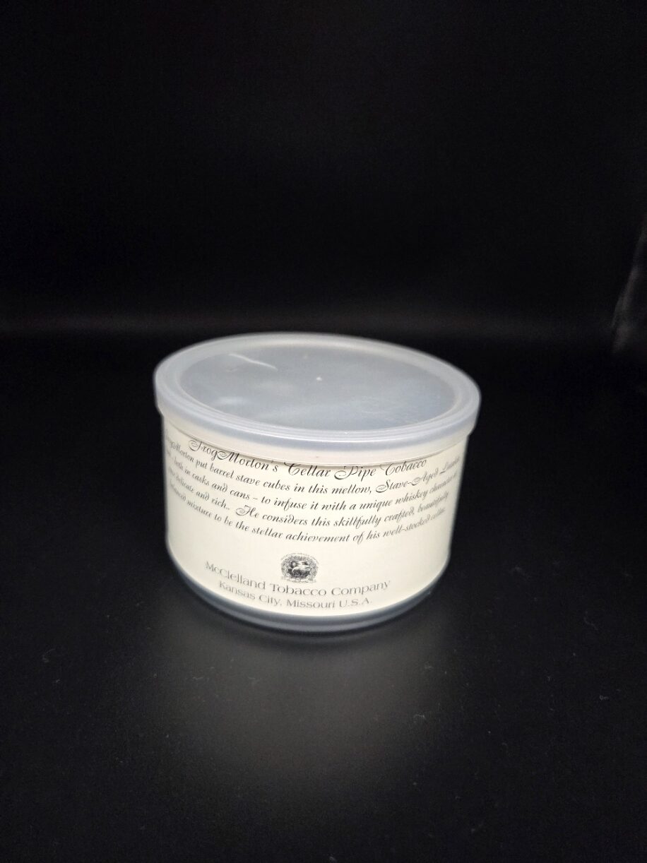 1 x 50g tin. Expect a mellow, fragrant latakia blend aged with stave cubes cut from barrels used to mature and flavor Frog Morton's own special whiskeys. New and unopened. Sealed for freshness and kept in temp controlled room.