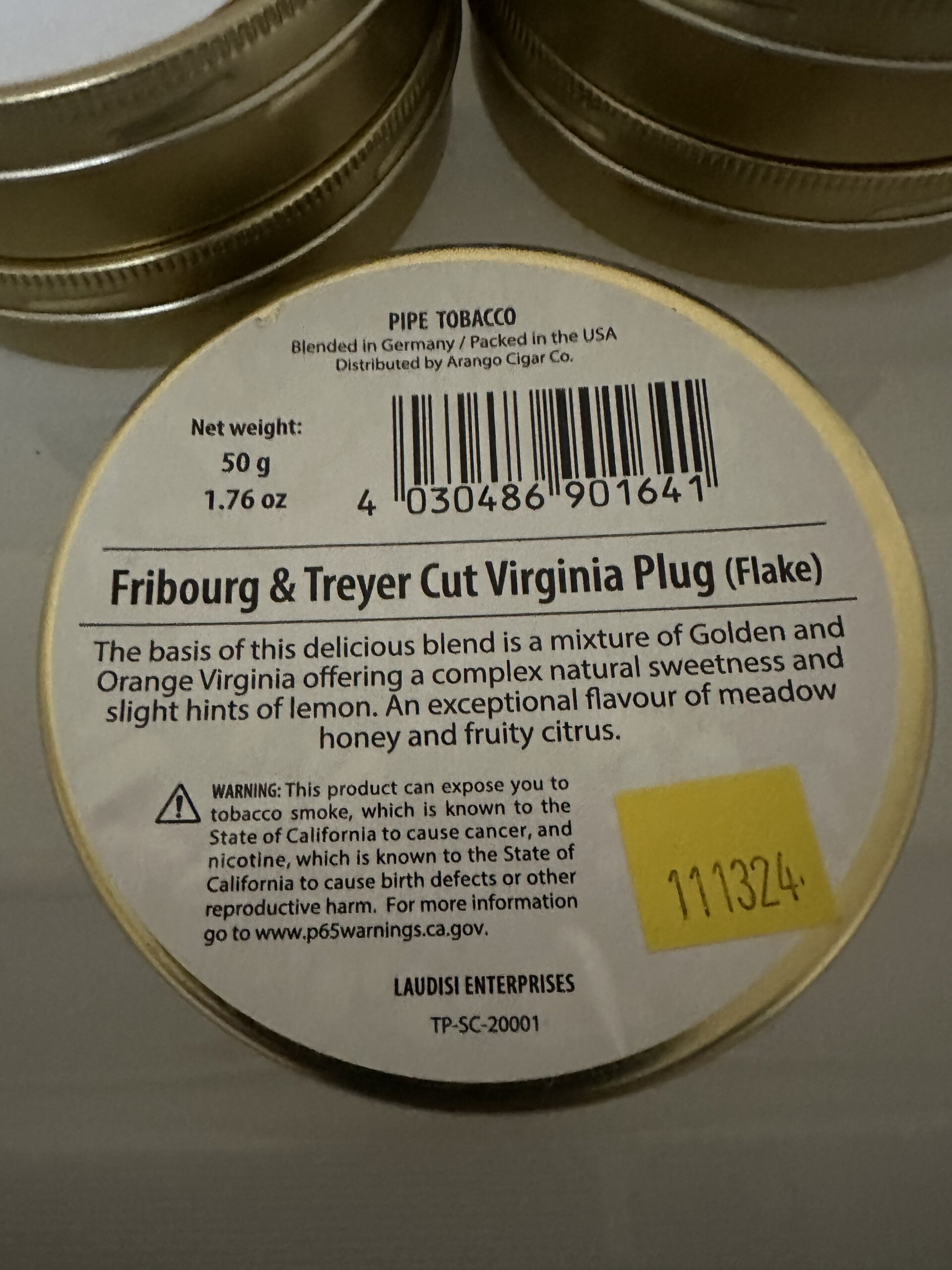 You are bidding on 5 sealed tins of Fribourg & Treyer Cut Virginia Plug from 2024