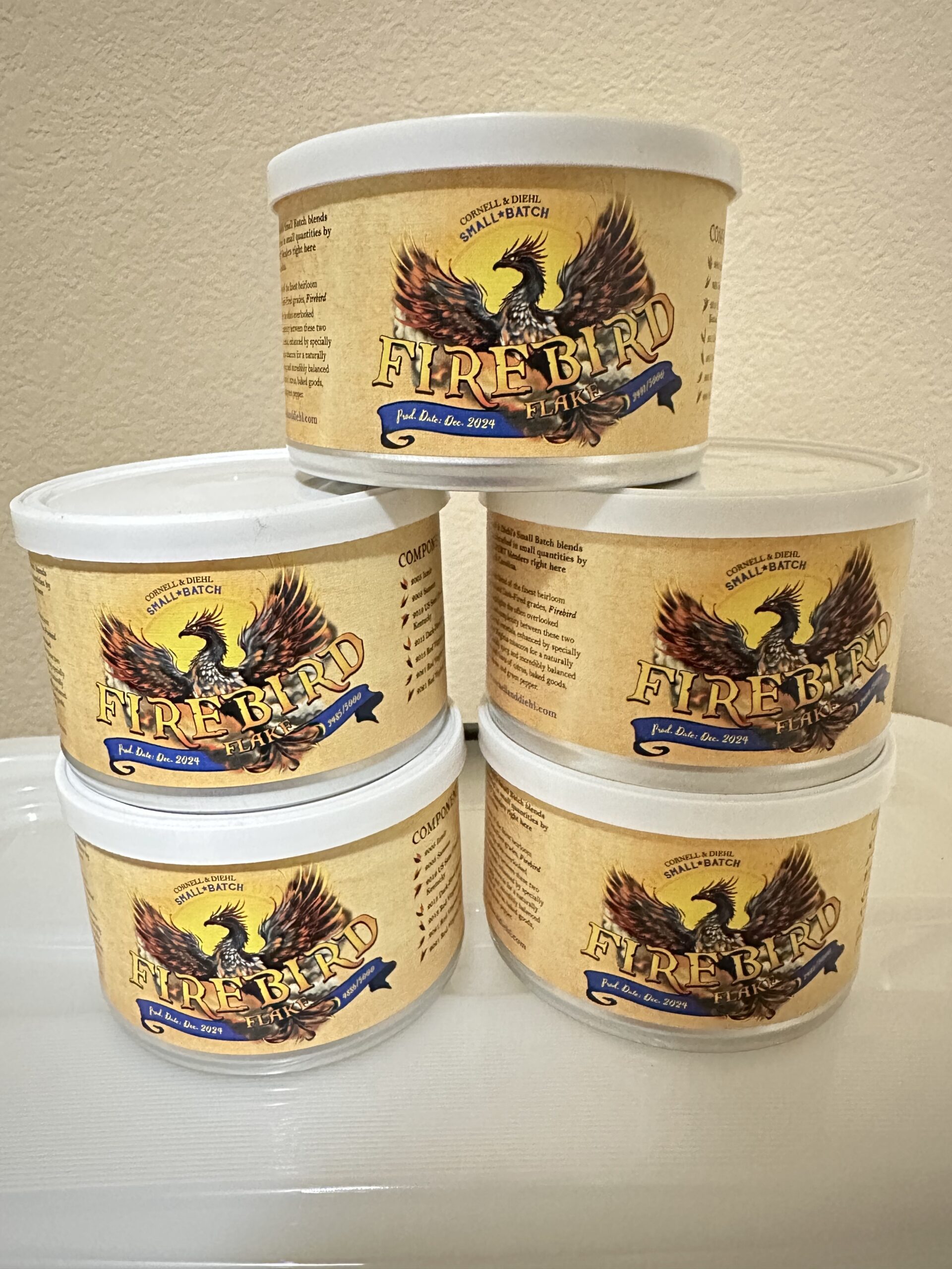 You are bidding on 5 sealed tins of the first release (January 2025) Cornell & Diehl Firebird Flake