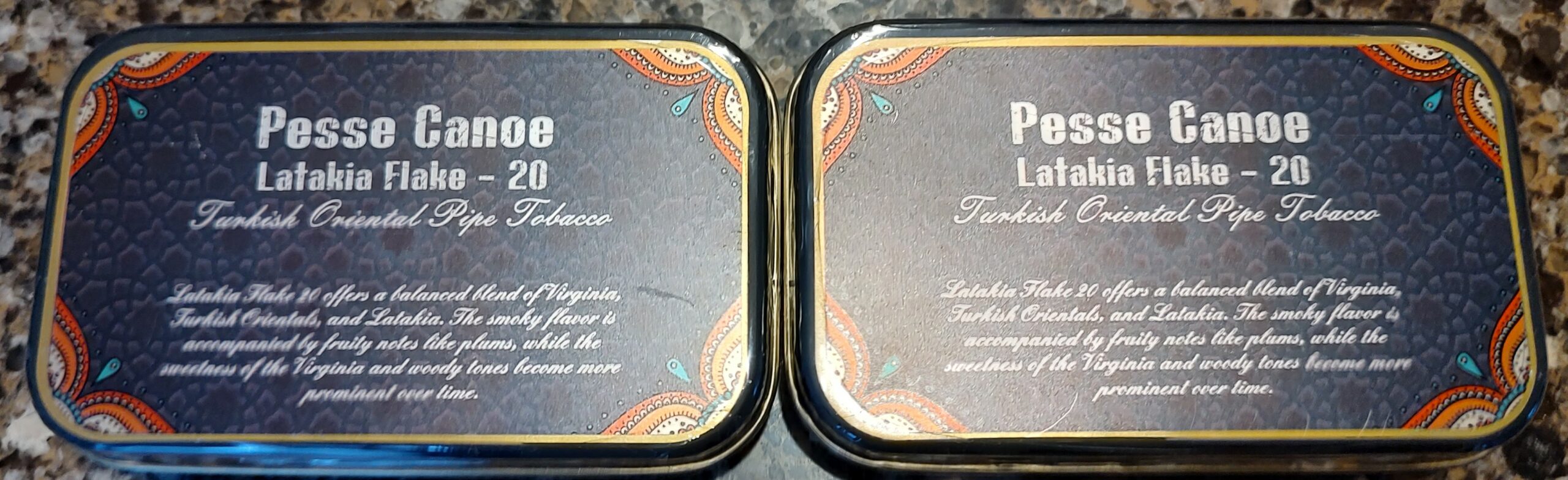 This auction is for two 1.76 oz. tins of Pesse Canoe Latakia Flake - 20.