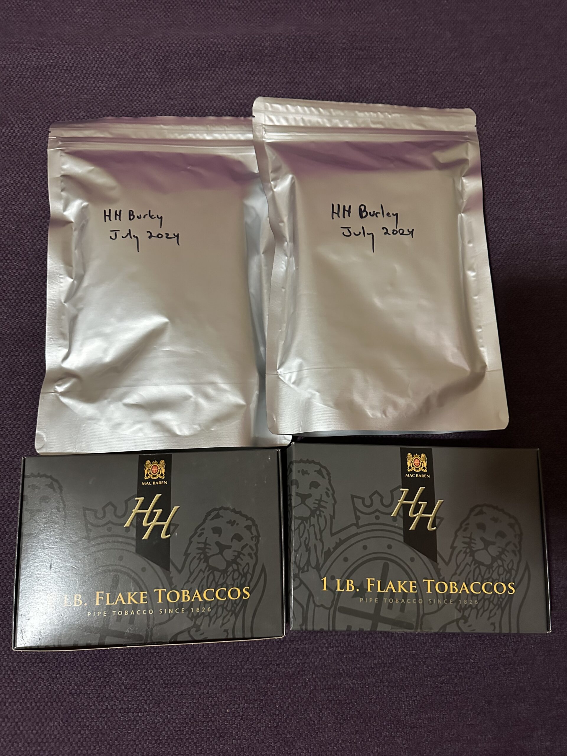 You are bidding on 2 pounds of discontinued Mac Baren HH Burley Flake from 2024. The boxes in the photos are empty, however the original sealed Mac Baren packaging that was inside the boxes are in the mylars.