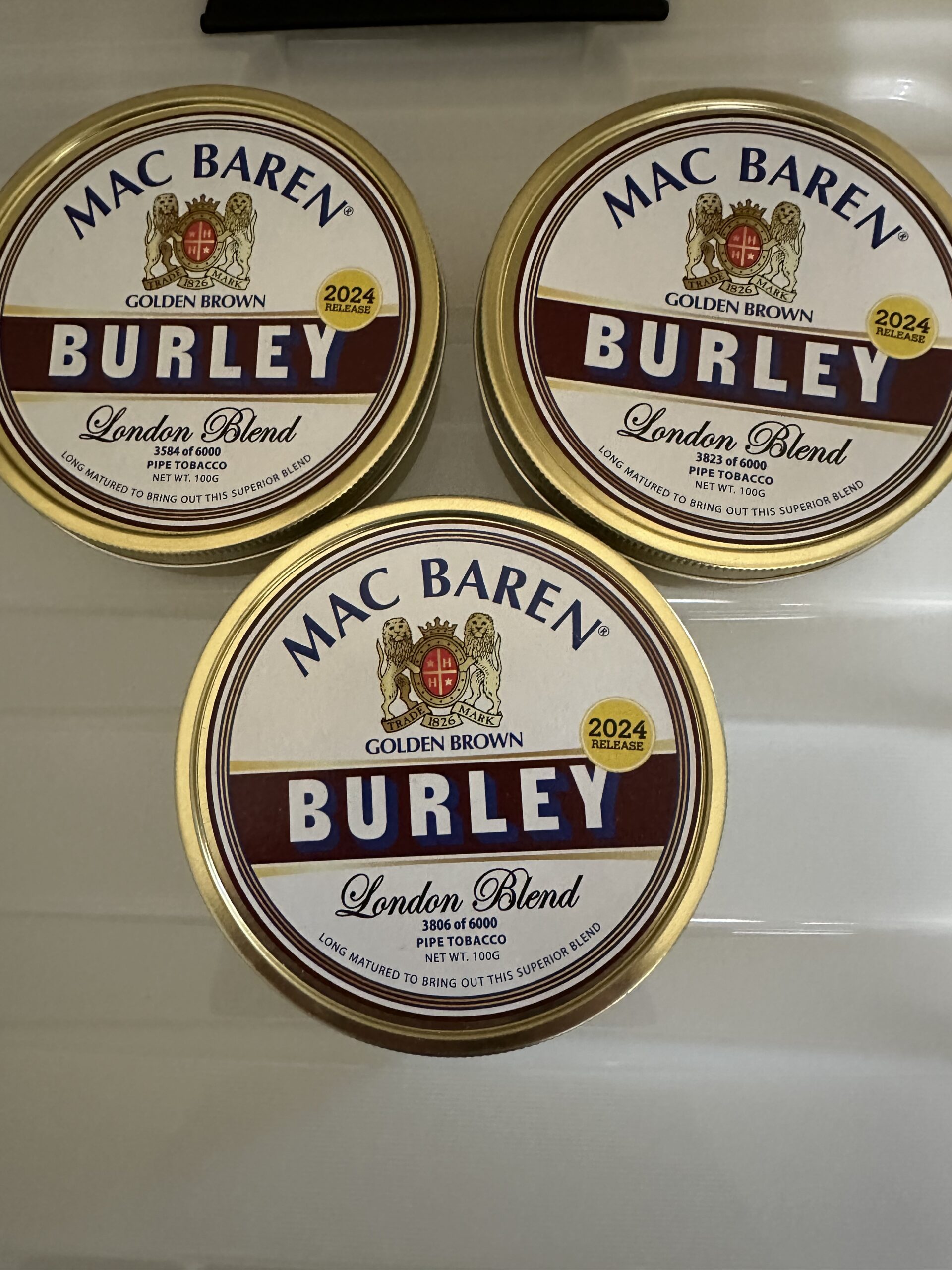 You are bidding on three sealed tins of discontinued Mac Baren Burley London Blend from 2024