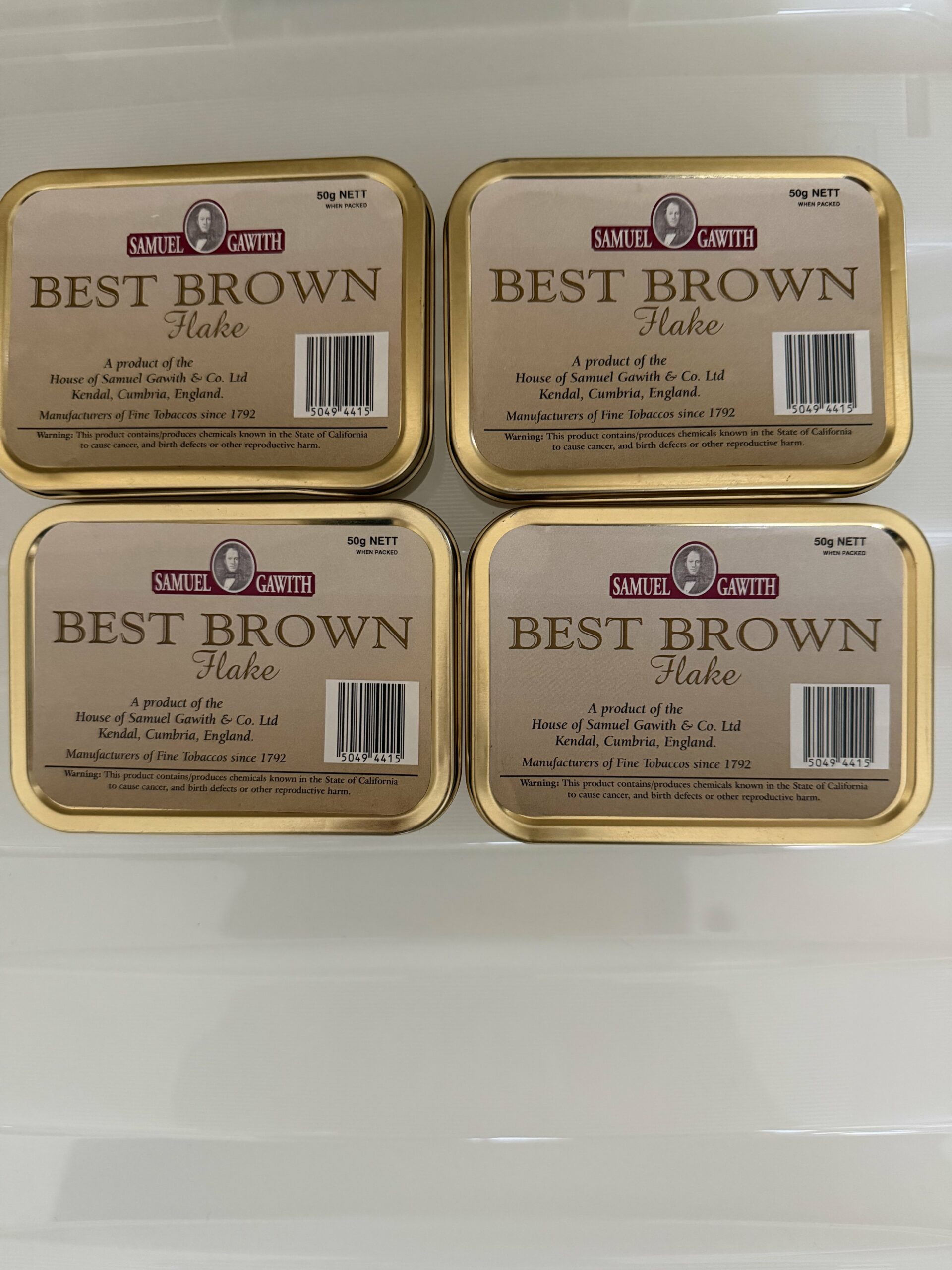 You are bidding on 4 sealed tins of 2015 Samuel Gawith Best Brown Flake.