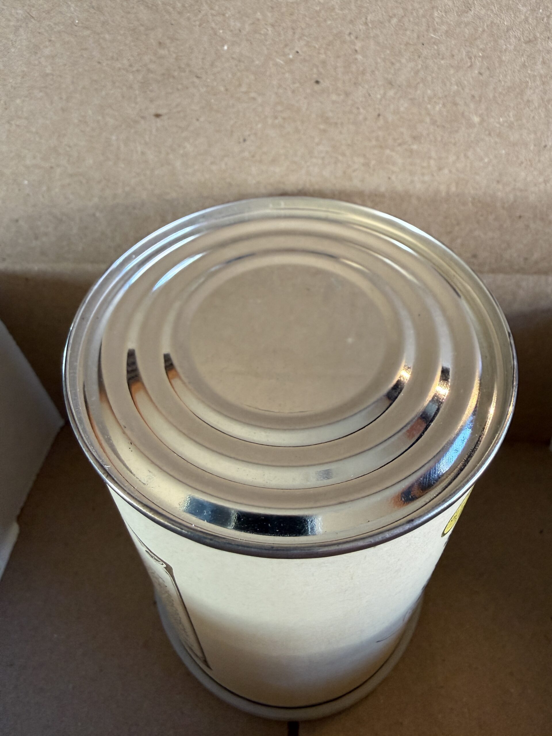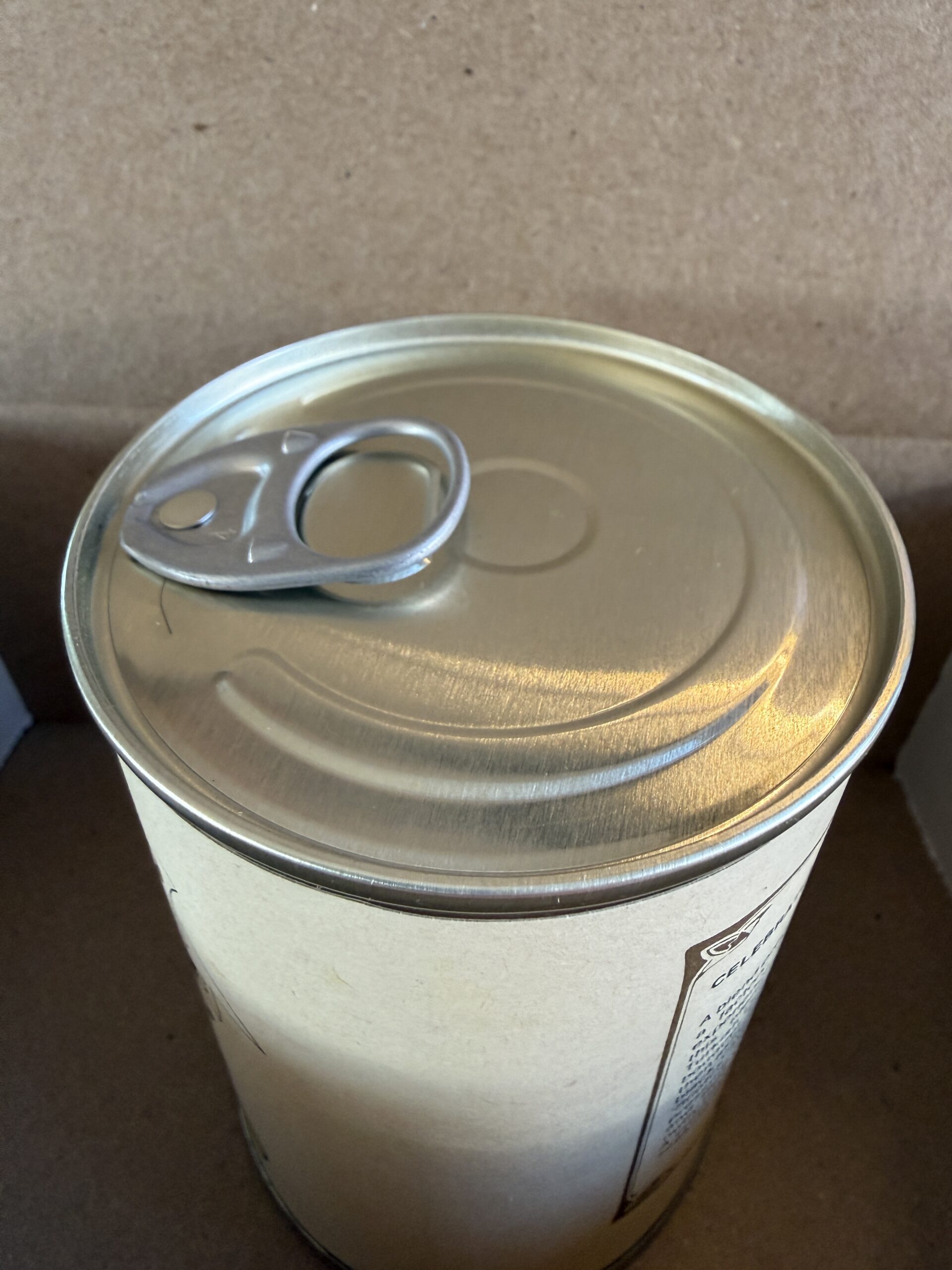 Tin is in excellent condition, no rust spots, contents are quiet, no rattling, seal is intact. Tin is puffed out.