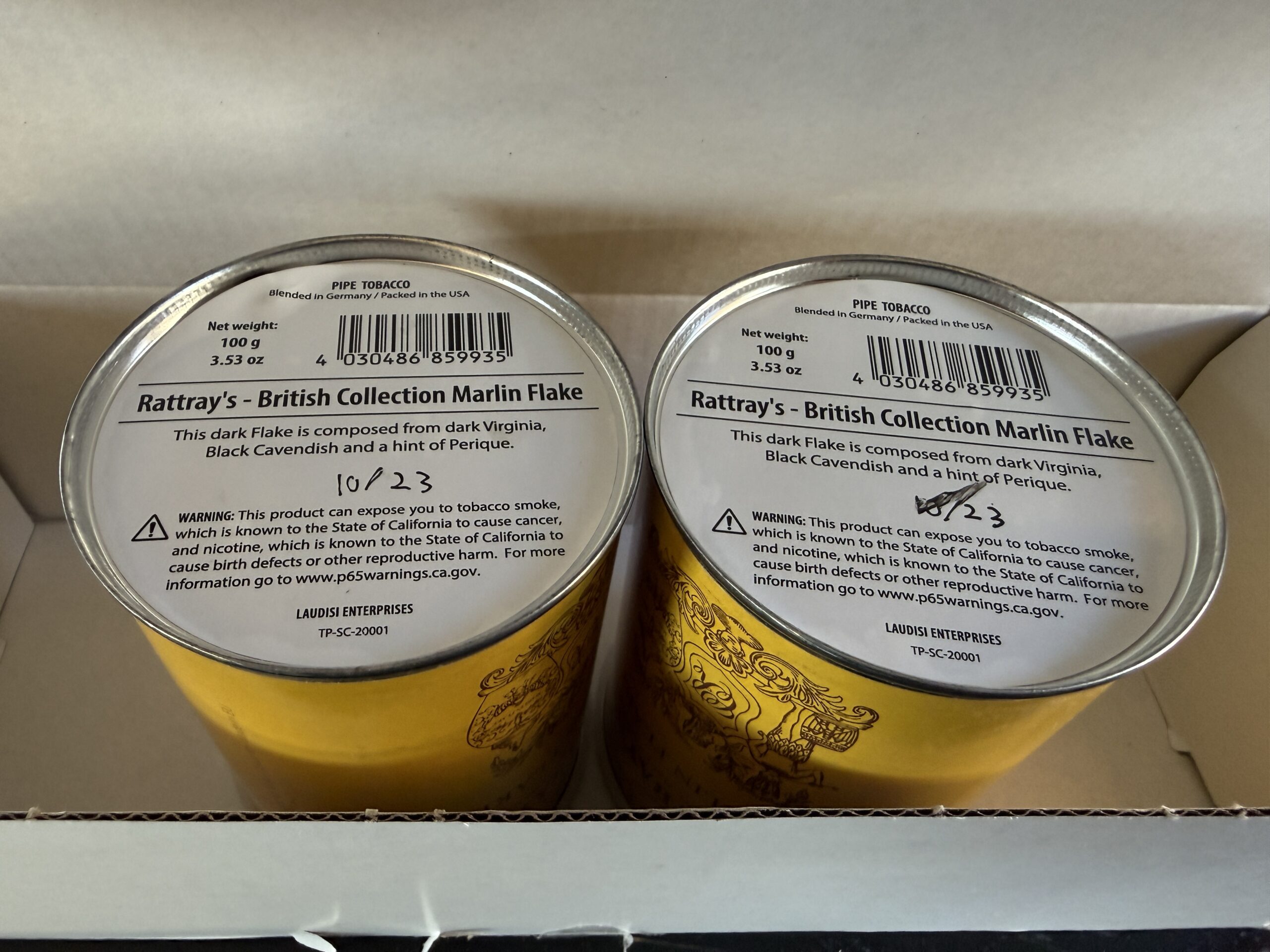 Up for sale is a pair of 2023 tins of Marlin Flake.