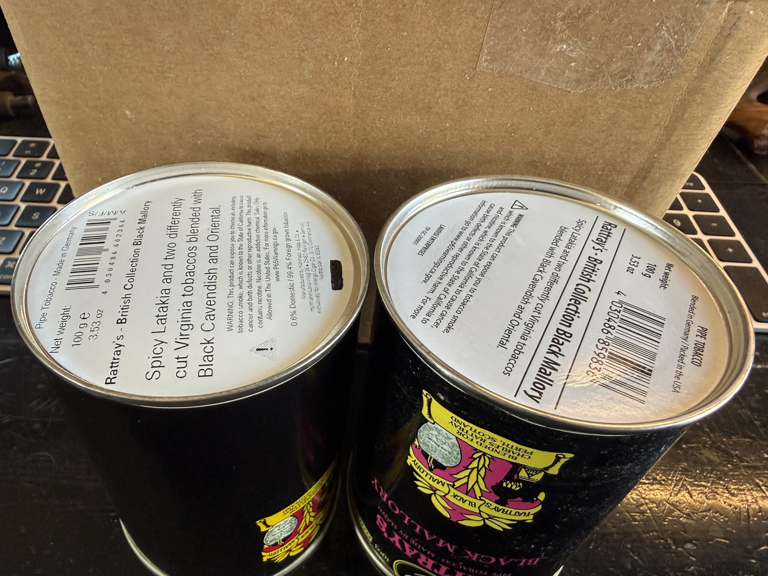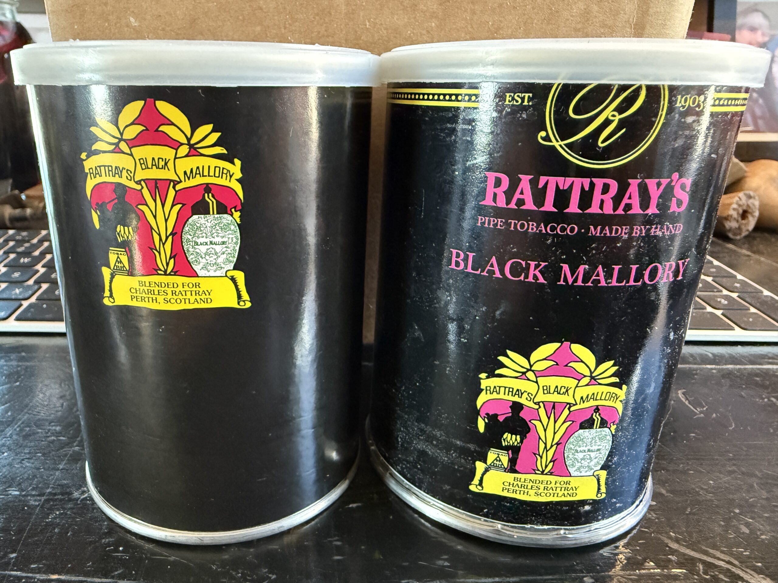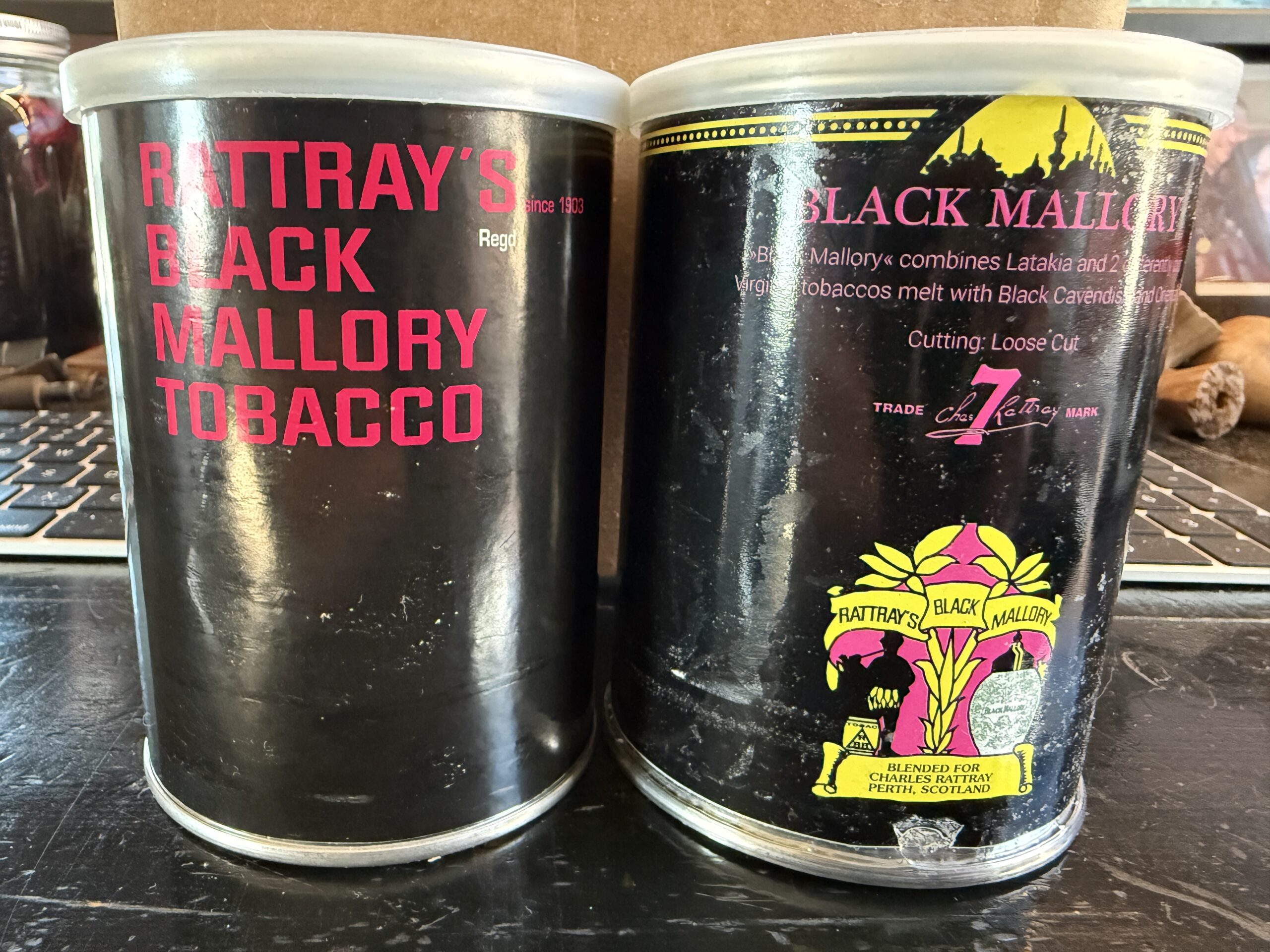 Pair of Rattray's Black Mallory tins - BIN @ $50