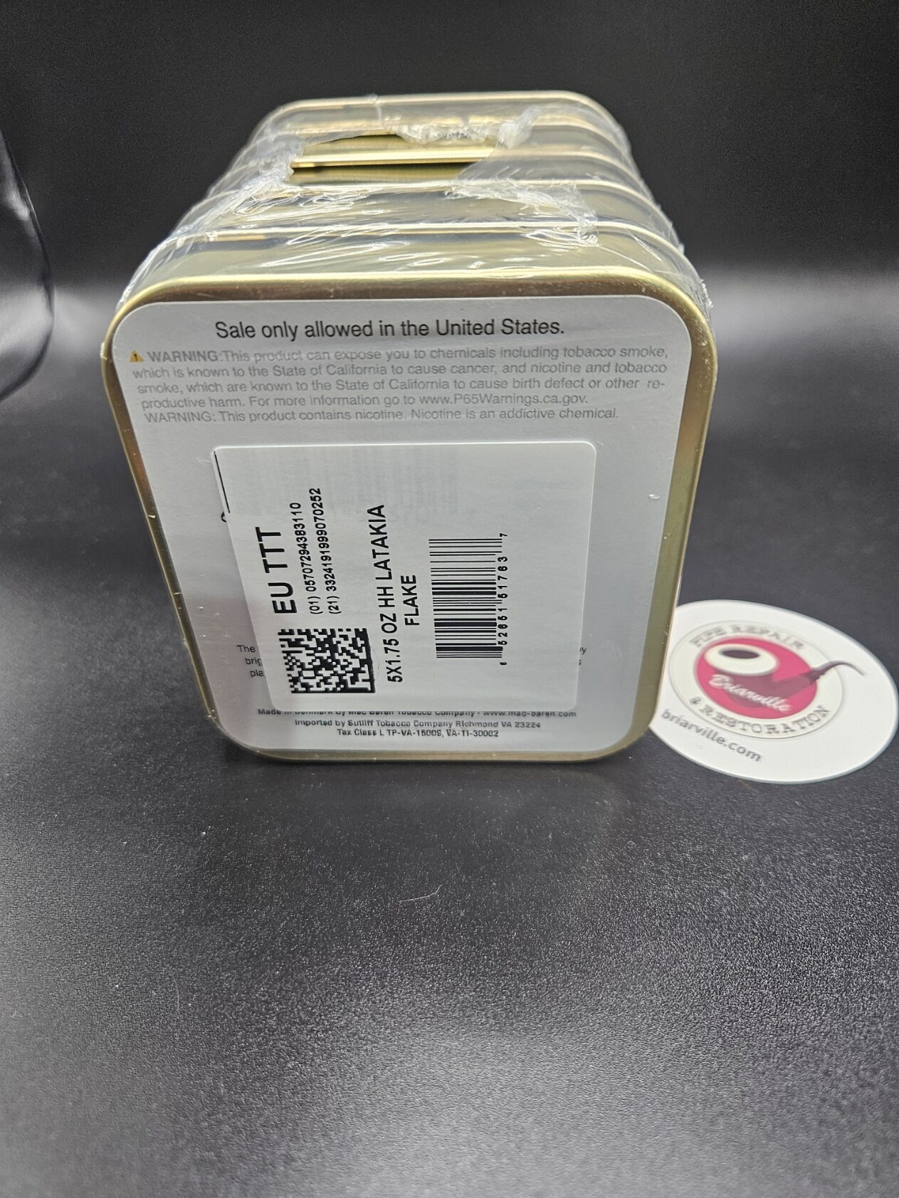 You are bidding on 5 sealed tins of discontinued Mac Baren HH Latakia Flake from 2023.