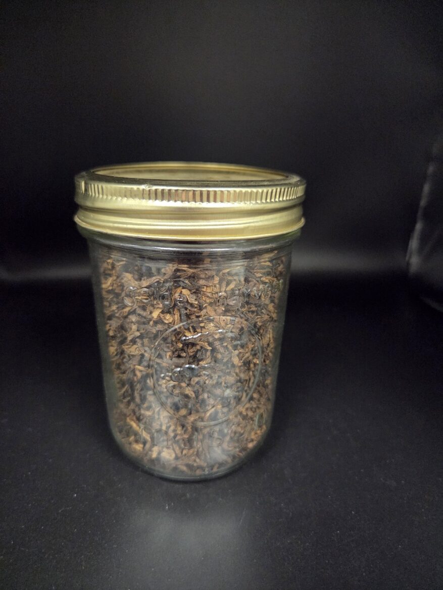 1 x mason jar approximately 2.5oz of lose tobacco. Expect a harmonious blend of golden and dark Virginias with small portions of burley and air-cured leaf. Not sealed, however tobacco is still moist and kept in temp controlled room.