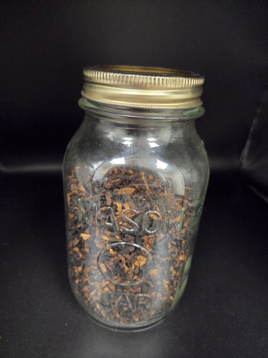 1 x mason jar approximately 3.5oz of lose tobacco. Expect a classic medium English mixture, rich in Oriental tobaccos, a good measure of Cyprian and Syrian Latakias, and just enough golden, red and matured Virginias. Sealed for freshness.