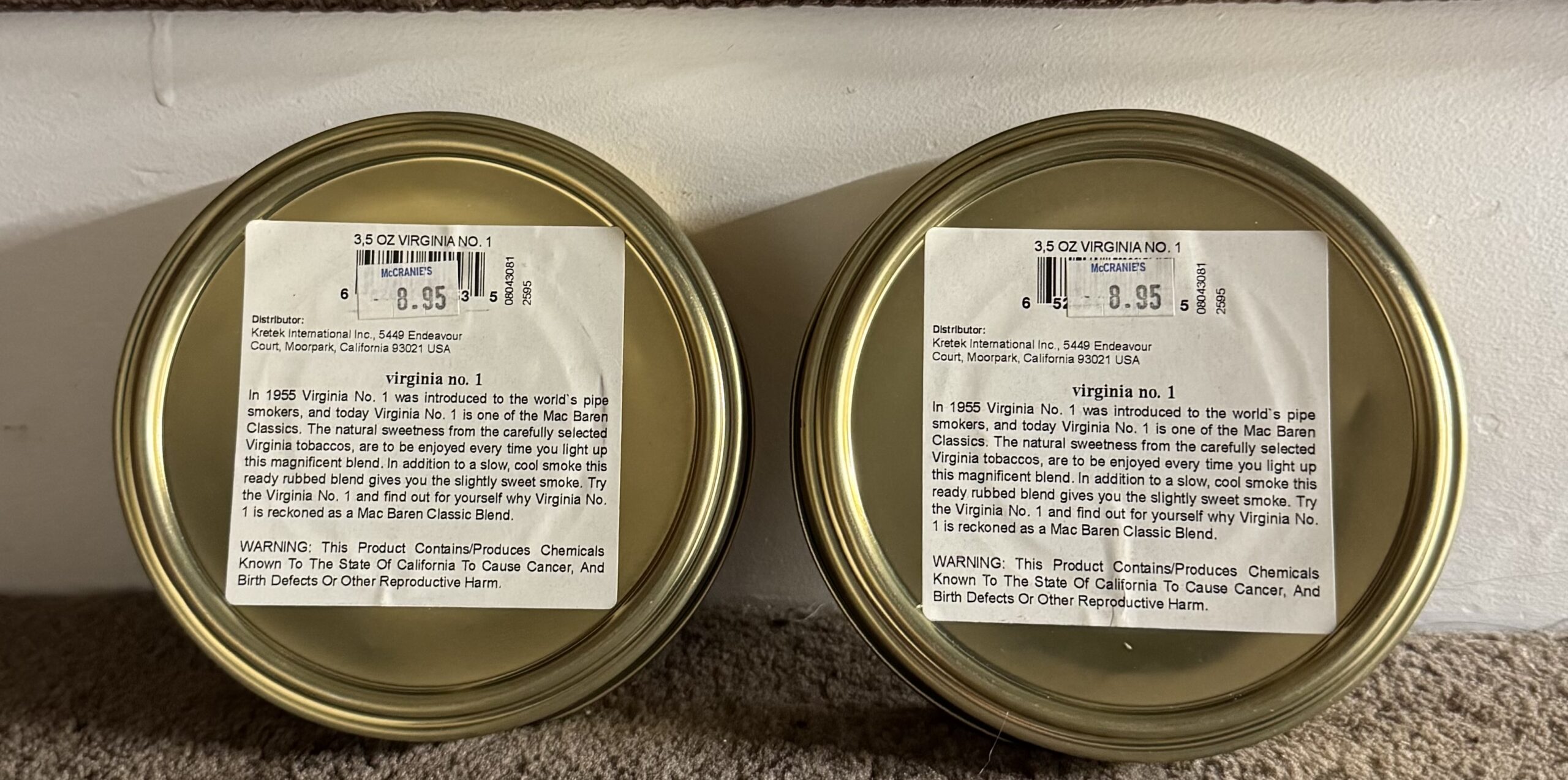 Mac Baren 2005 Virginia No.1 3.5oz tins Lot of 2